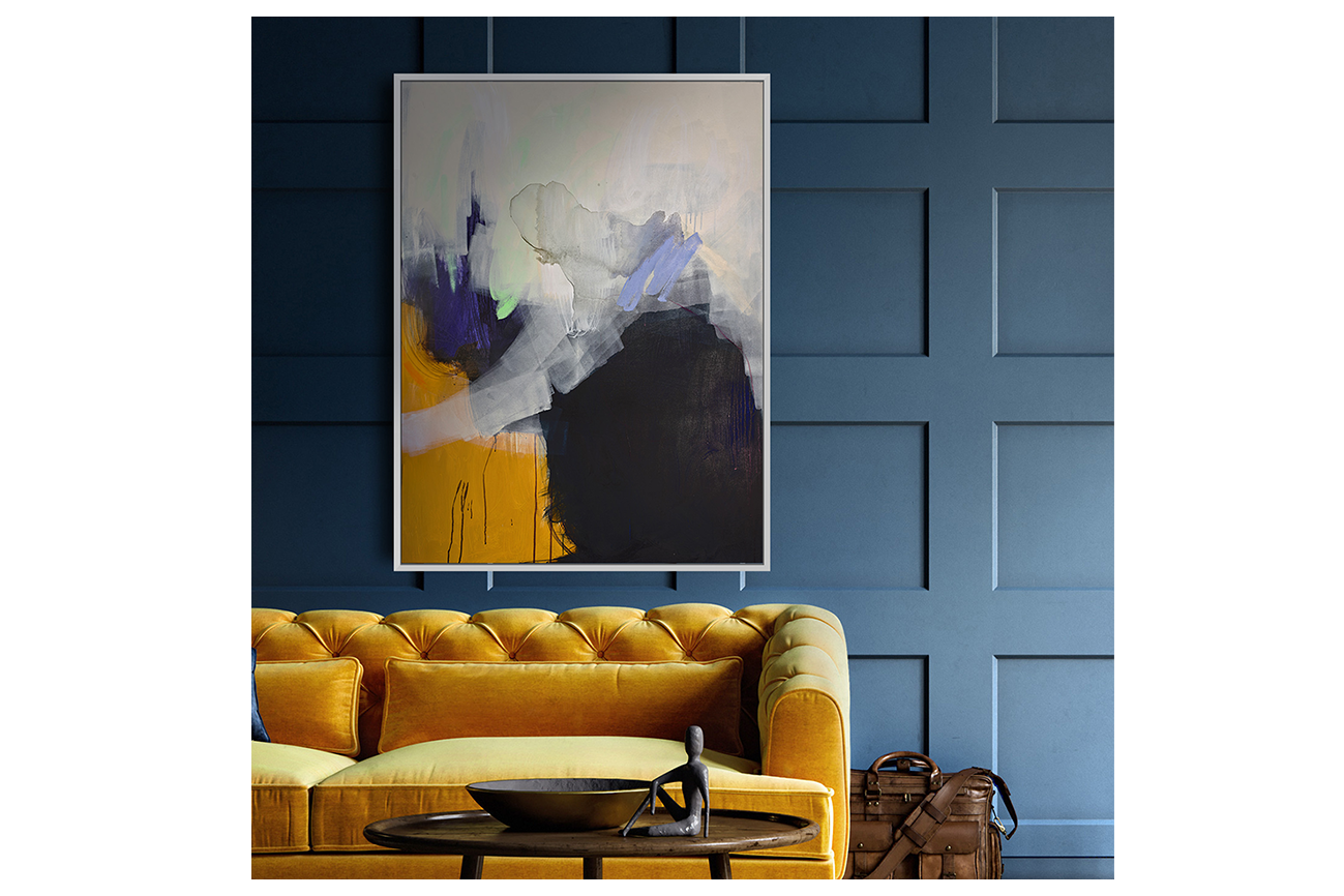 Ainoa will take center stage in your home. The mesmerizing quality of rich jewel tones is on full display in this work of art on cotton canvas. Abstract in nature, it provides opportunity for one’s imagination to come to life. Set in the contemporary living room or entryway interior, it injects vibrancy and personality to the room from every angle. Finished inside a grey wood frame, this piece can be hung horizontally or vertically. Aiona is a printed and hand-painted design, by artist Lola.