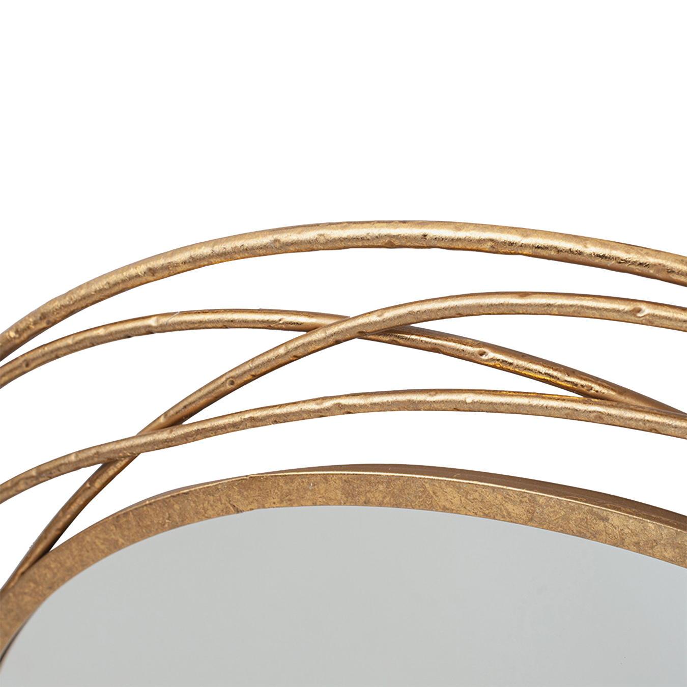 This antique metal round wall mirror is characterized by its striking and modern design which features sculptural, swirling circles surround the metal frame and is finished in either gold or silver. It can provide an eye-catching and stylish addition to any living space, capable of blending seamlessly into a variety of settings. Make a statement with this beautiful piece!