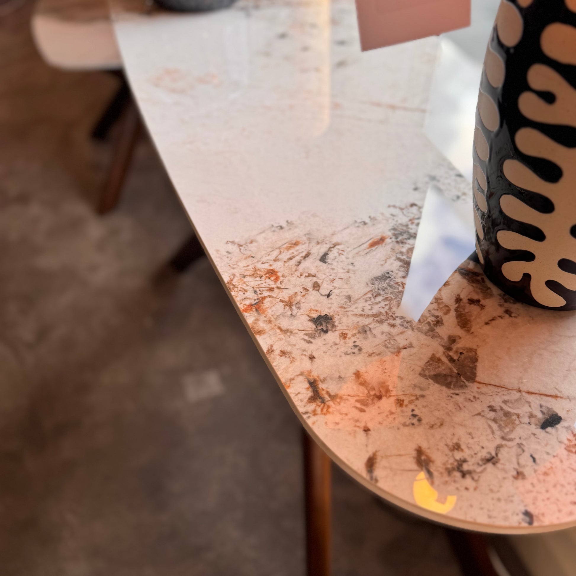 The standout sintered stone tabletop introduces a sophisticated, tactile finish - engineered not only for beauty but for everyday living. Exceptionally durable and scratch resistant, the surface is waterproof, stainproof, and unaffected by heat or cold, making it as practical as it is stylish. Its anti-bacterial properties and easy-clean finish ensure effortless maintenance, perfect for modern homes.