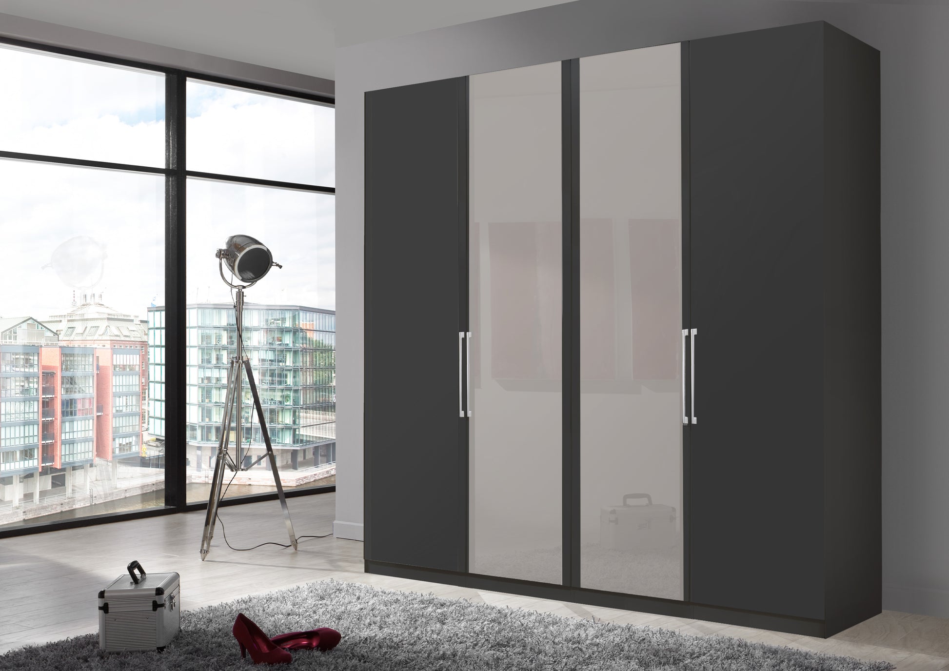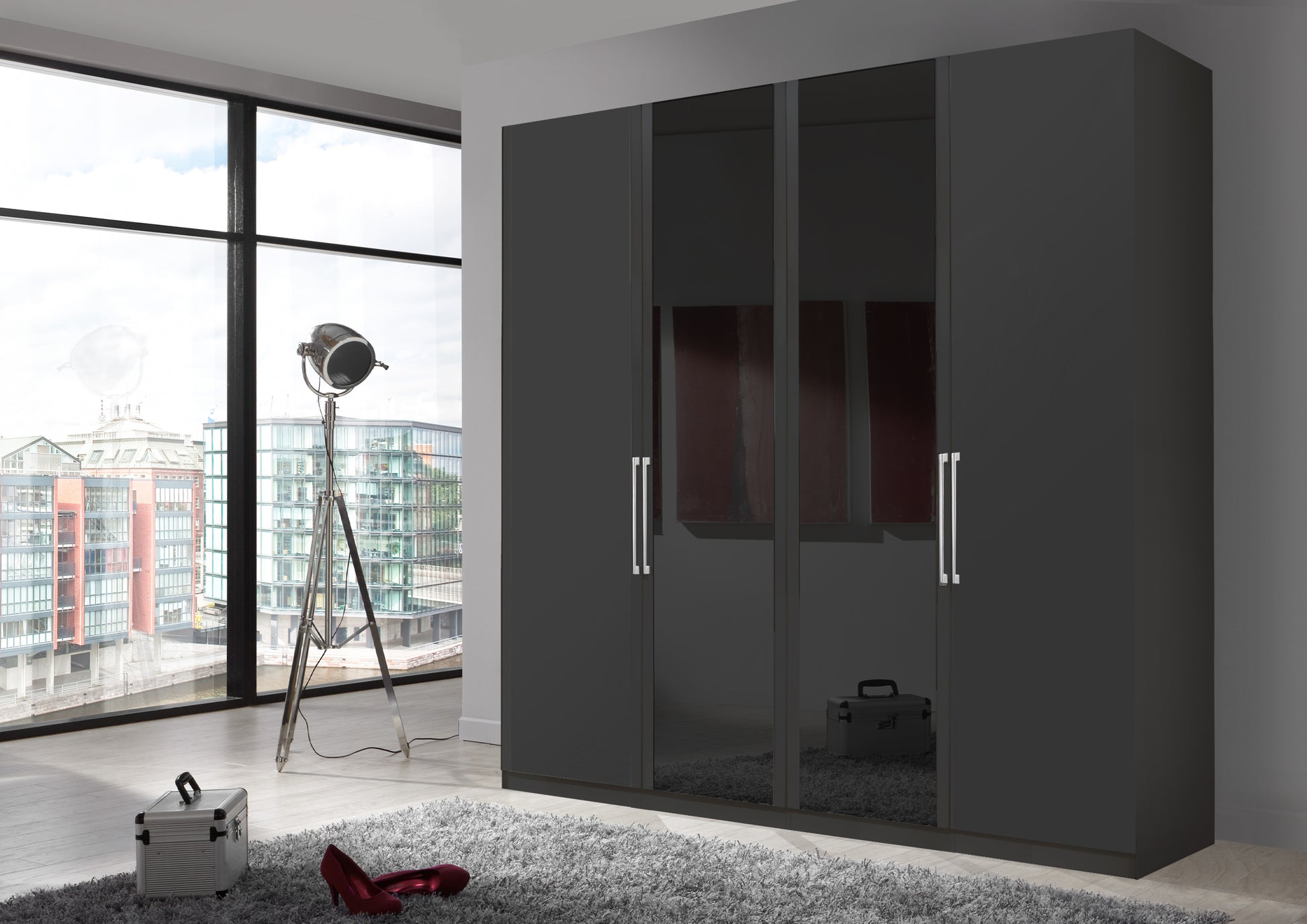 The Bermuda Hinged 4 Door Wardrobe in Matte Graphite W200 H216 D58 cm