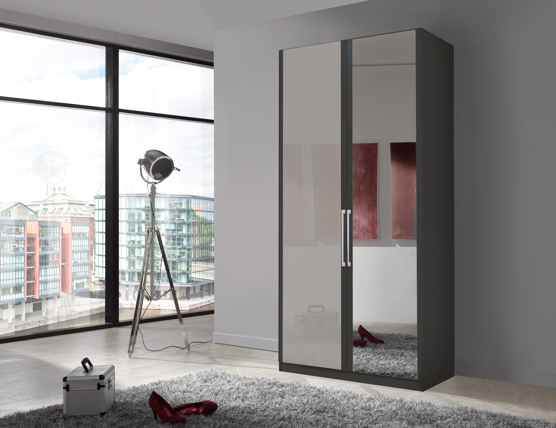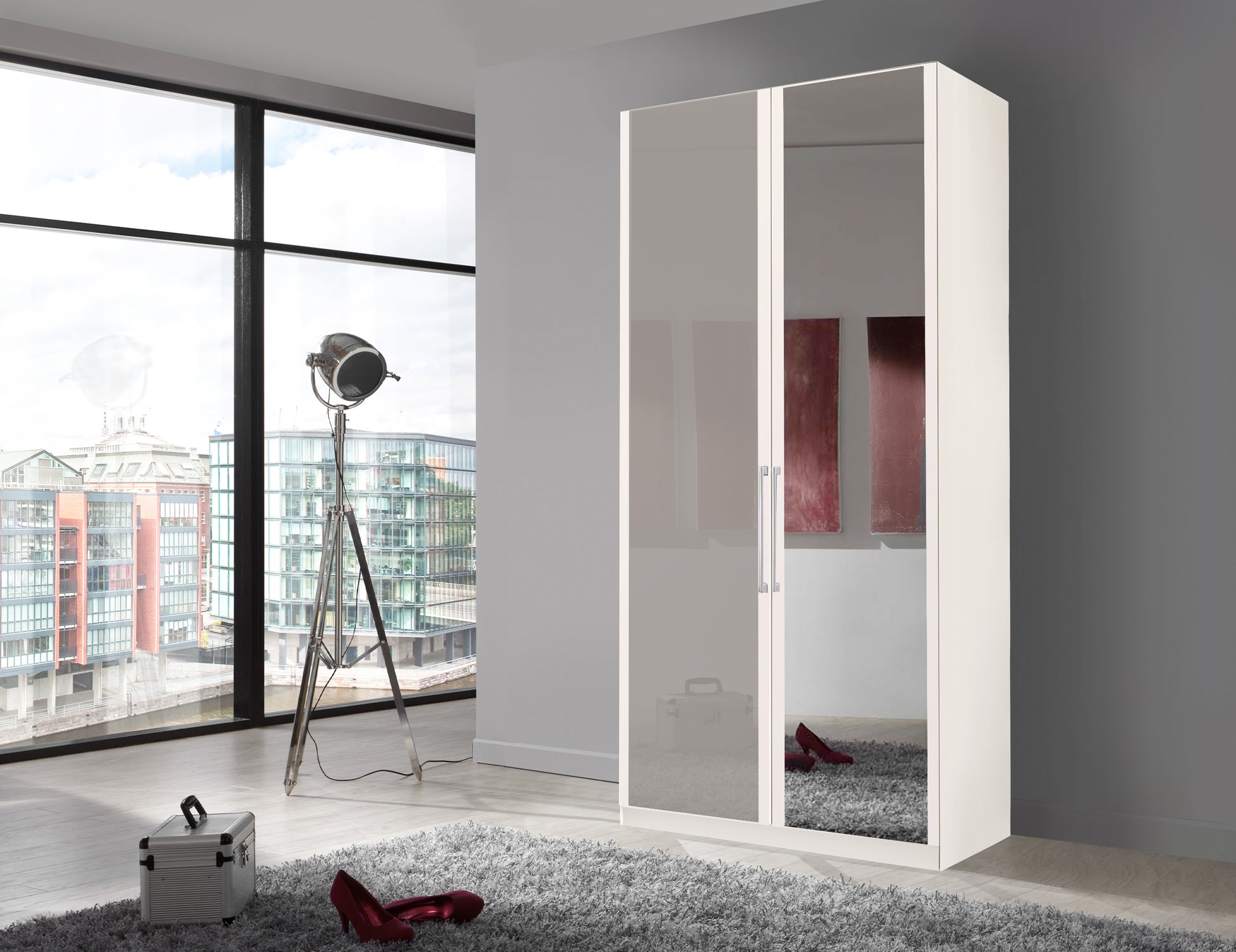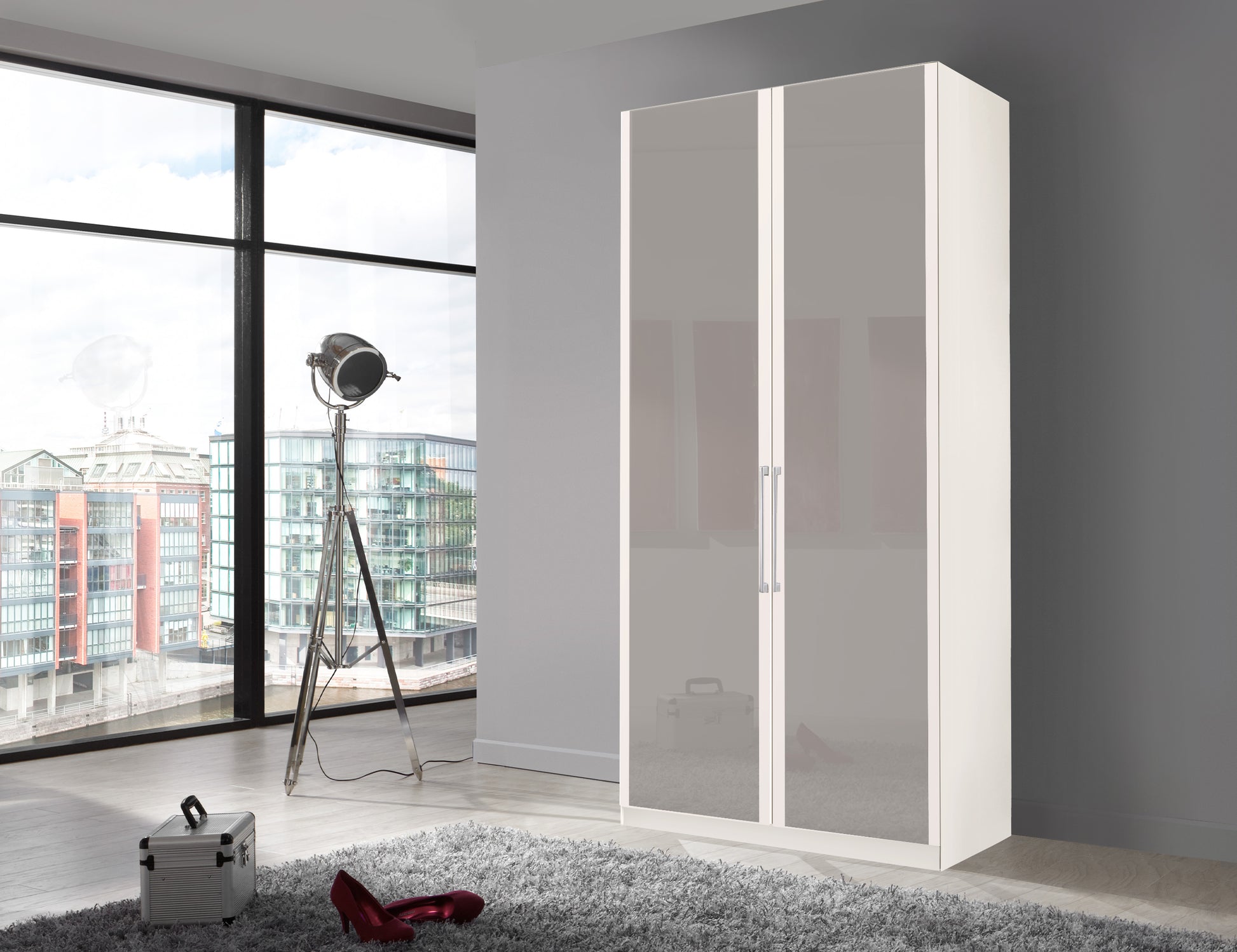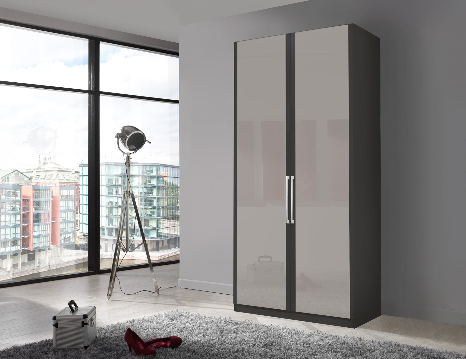 The Bermuda Hinged 2 Door Wardrobe in Glass Pebble Grey W100 H216 D58 cm