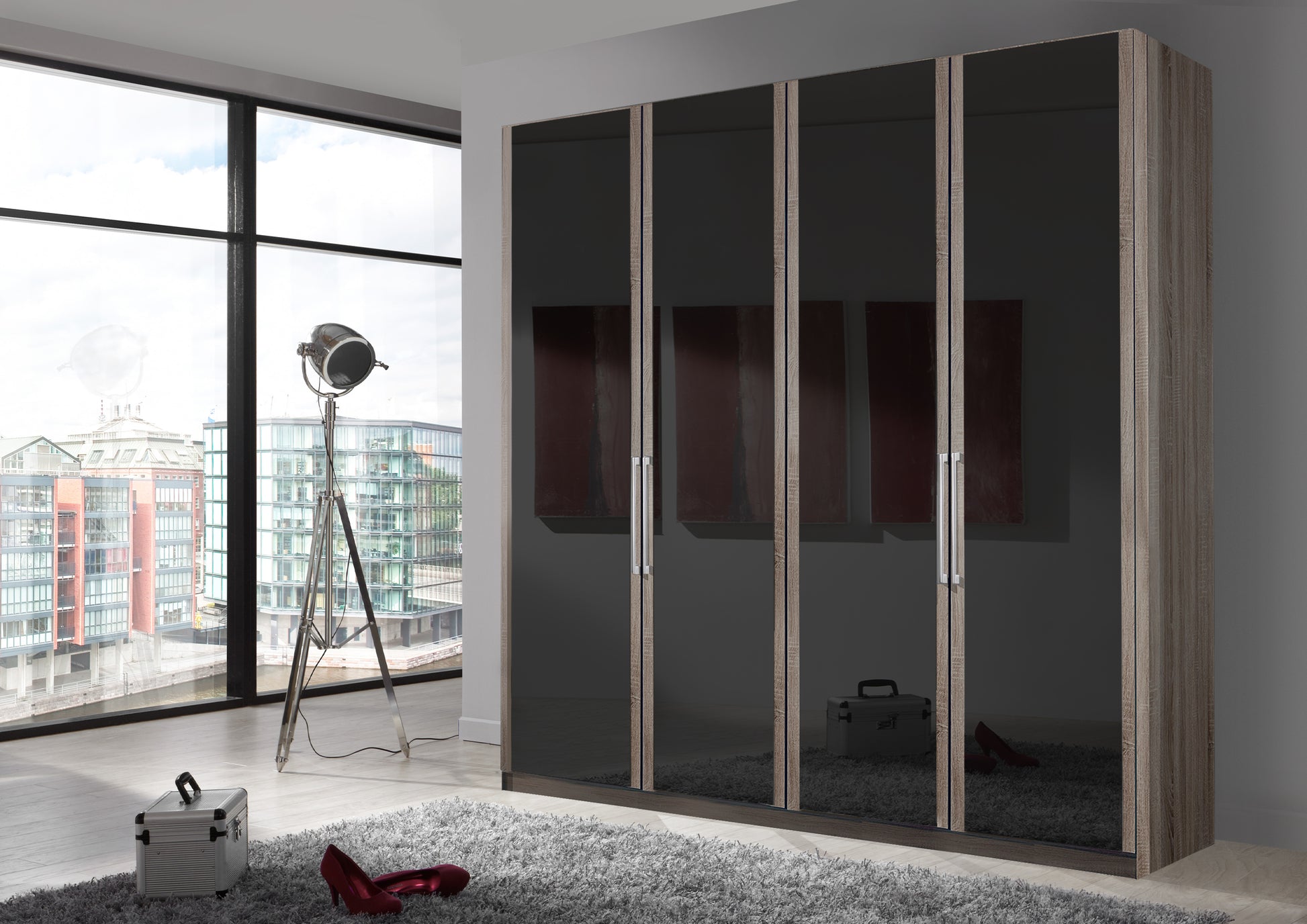 The Bermuda Hinged 4 Door Wardrobe in Glass Graphite W200 H216 D58 cm