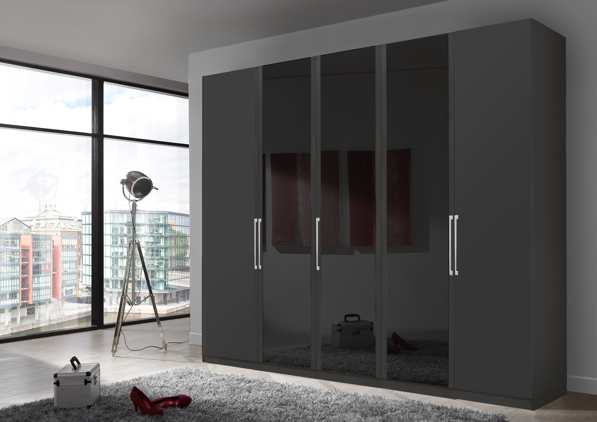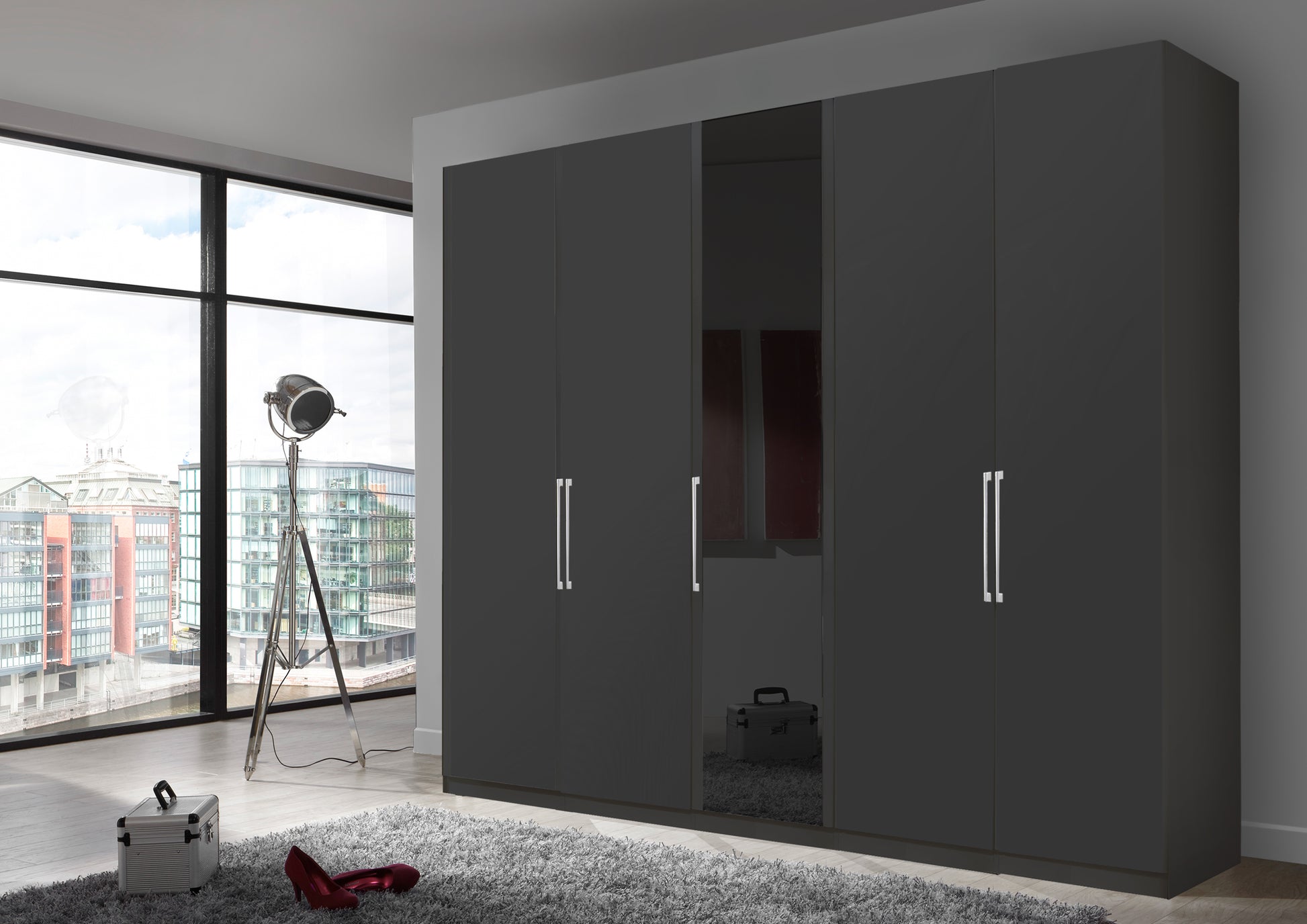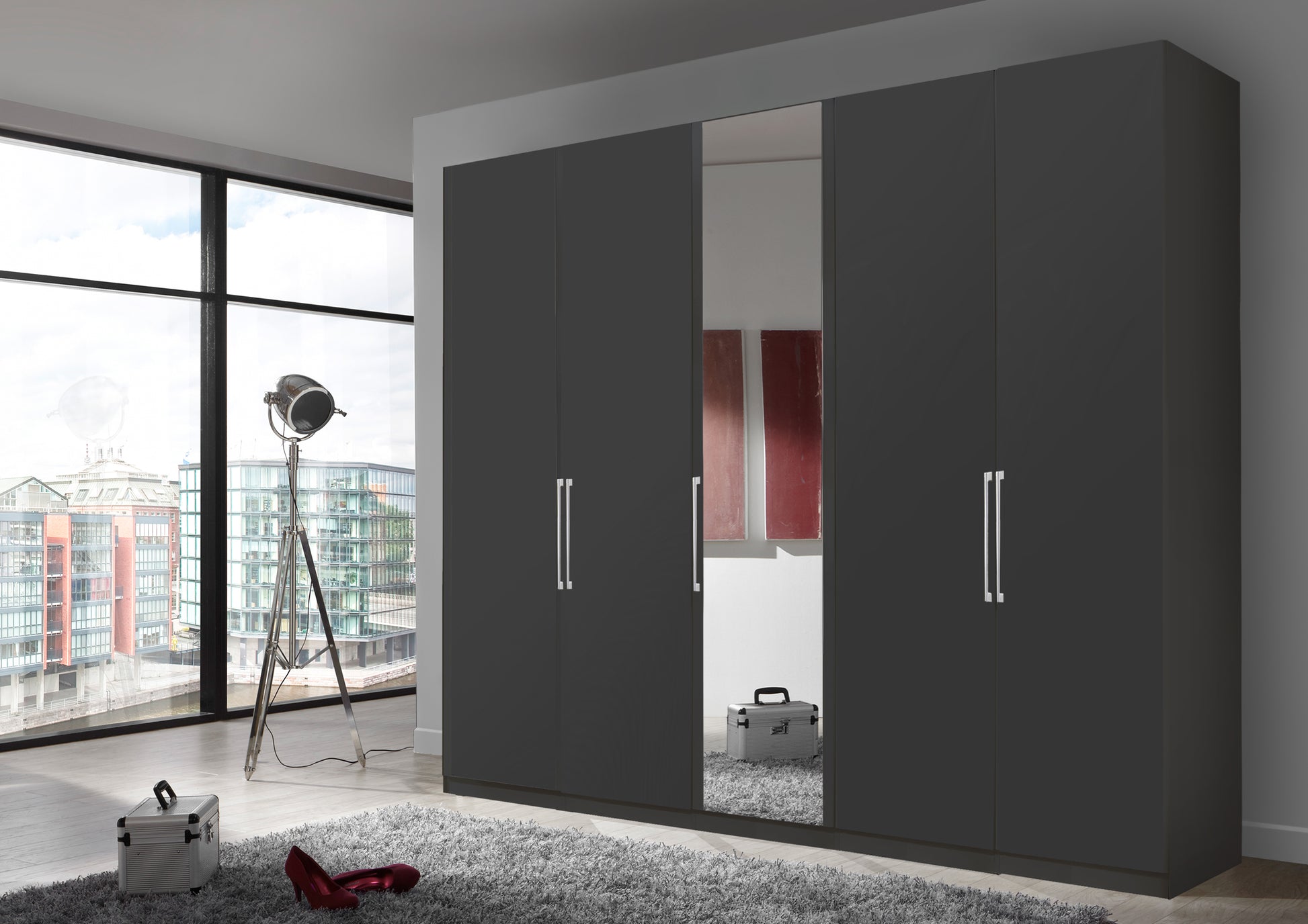 The Bermuda Hinged 5 Door Wardrobe in Matte Graphite W250 H216 D58 cm