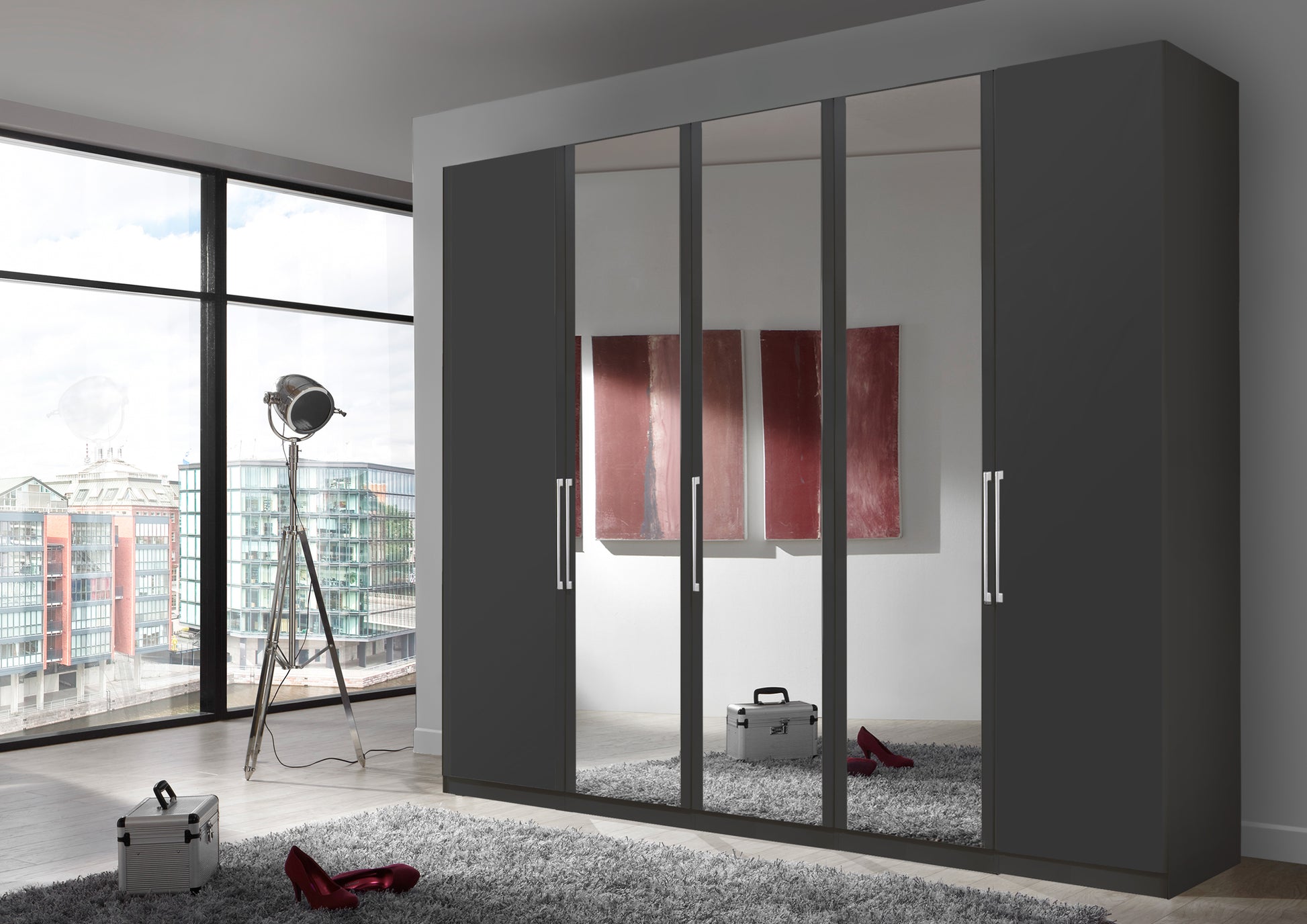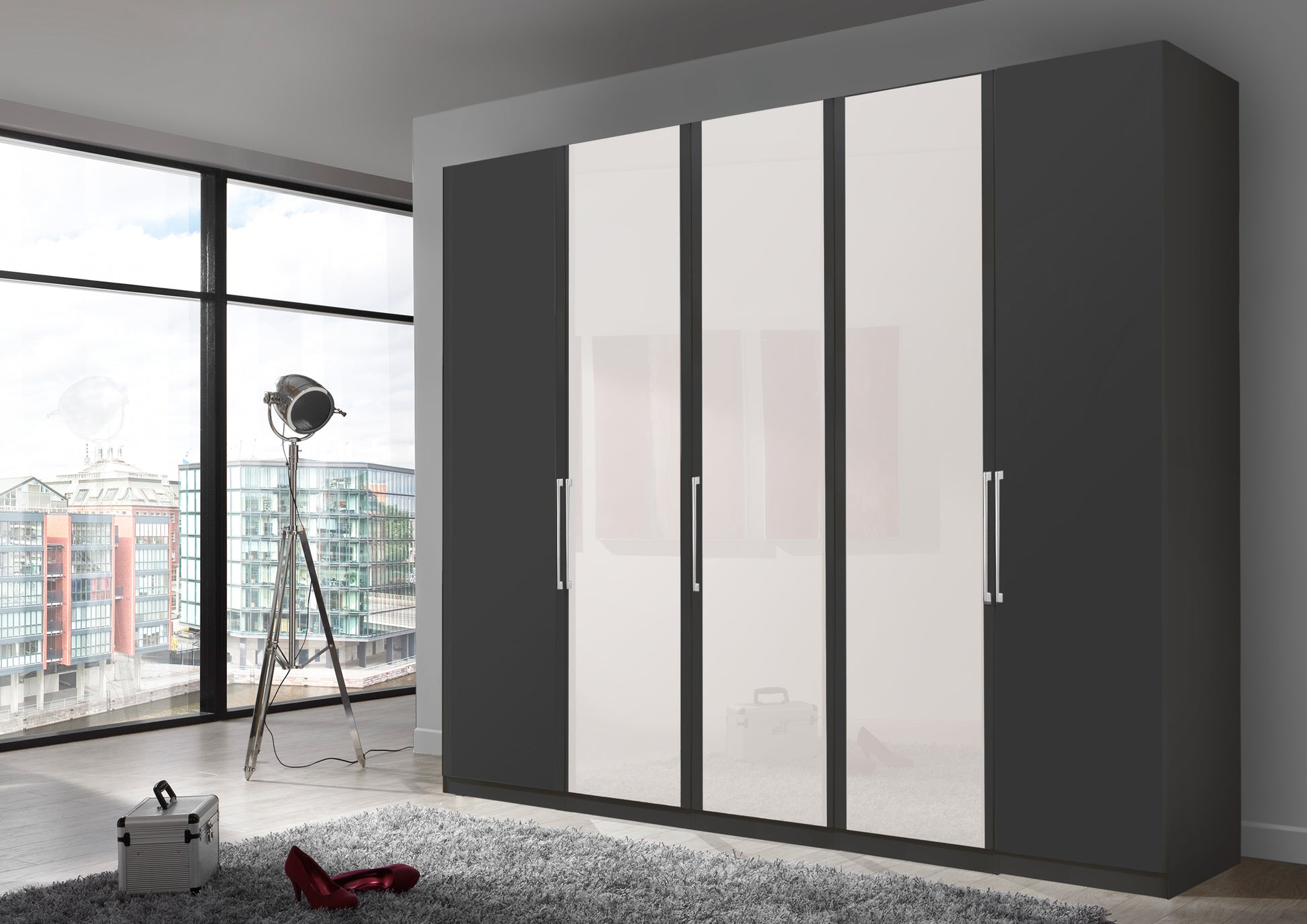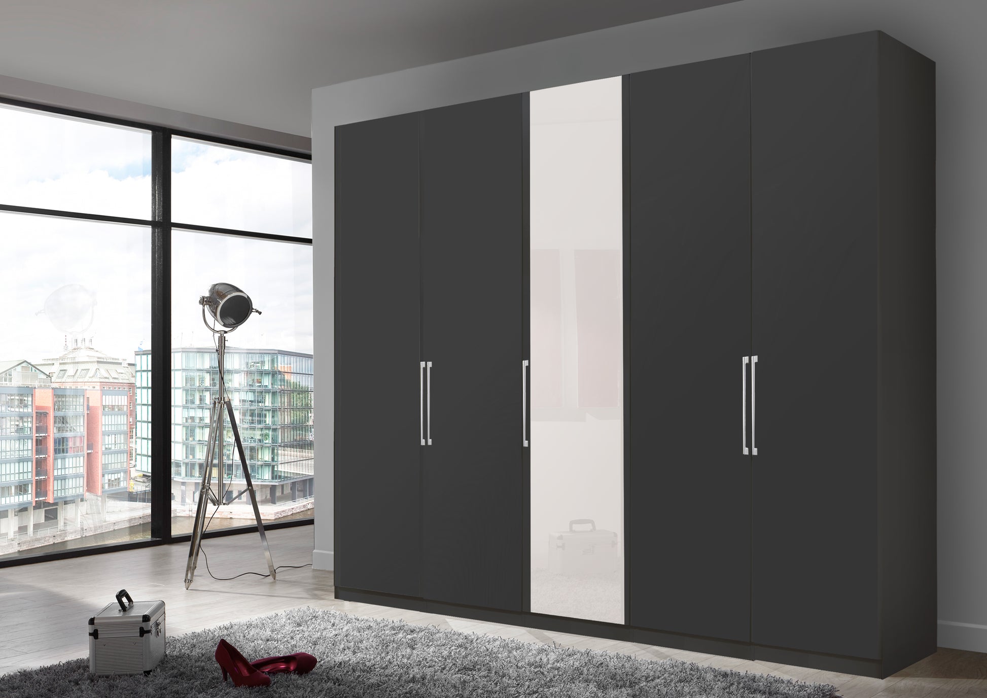 The Bermuda Hinged 5 Door Wardrobe in Matte Graphite W250 H216 D58 cm