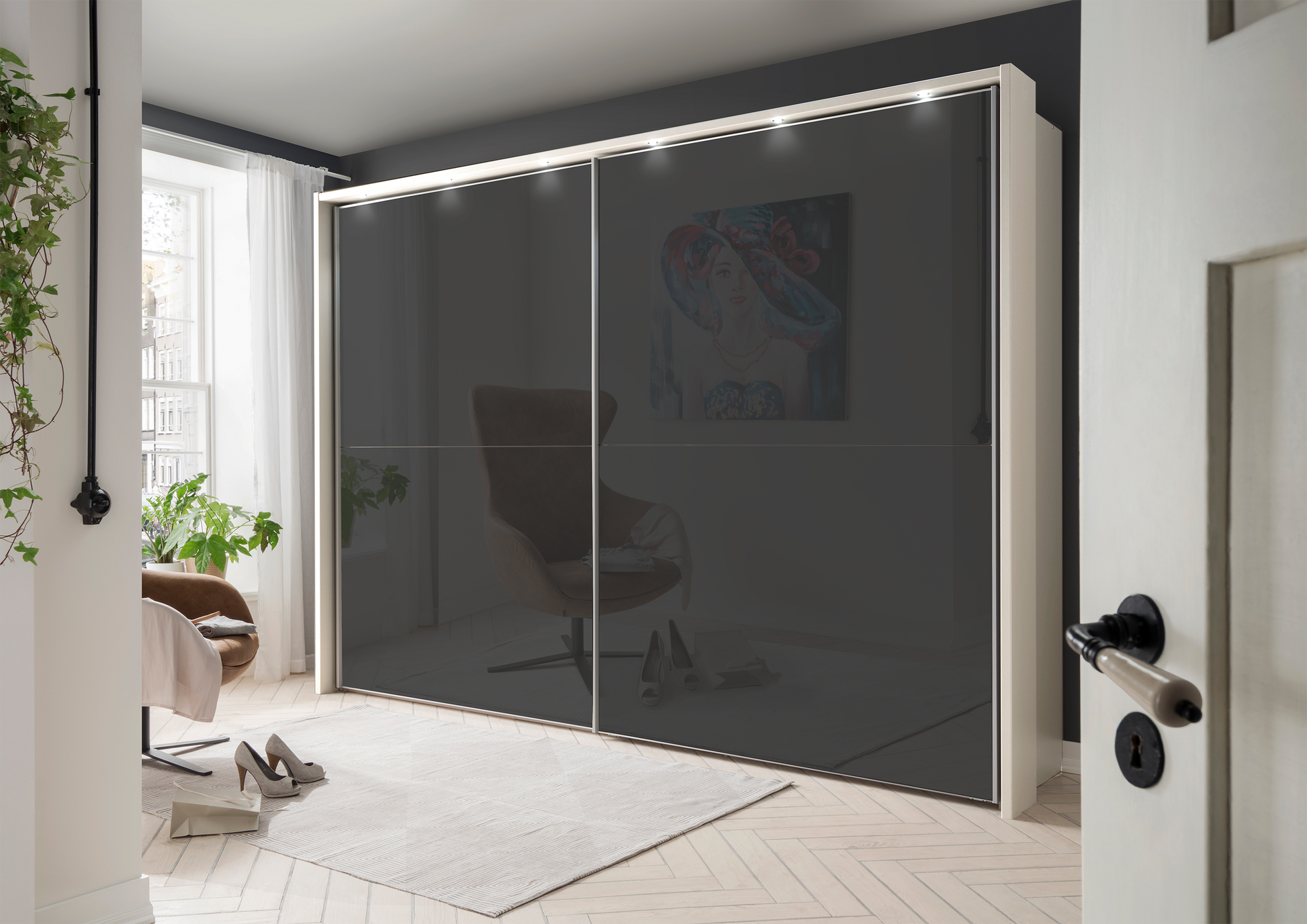 The Bermuda Sliding Wardrobe in Glass Graphite W200 H217 D67 cm