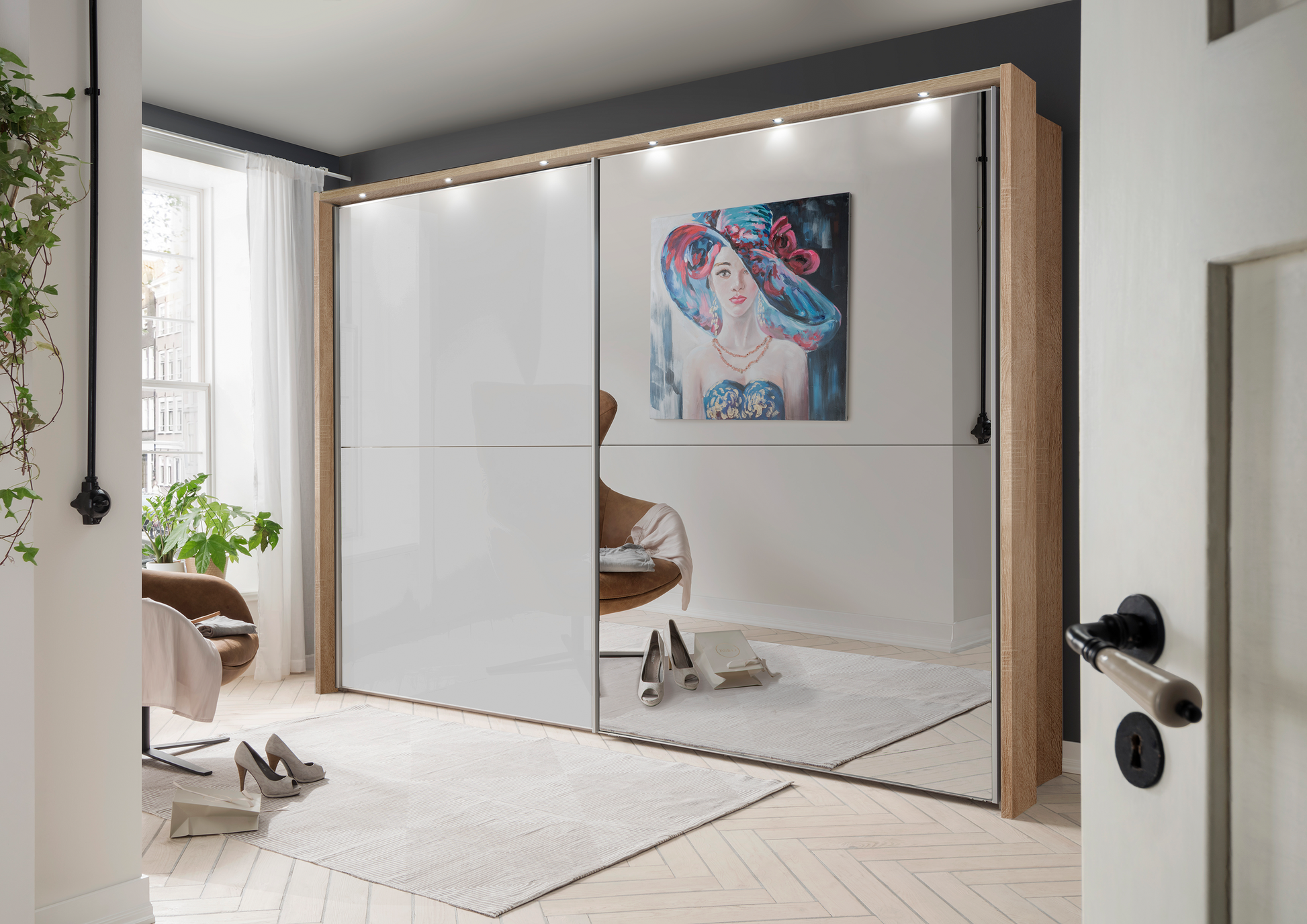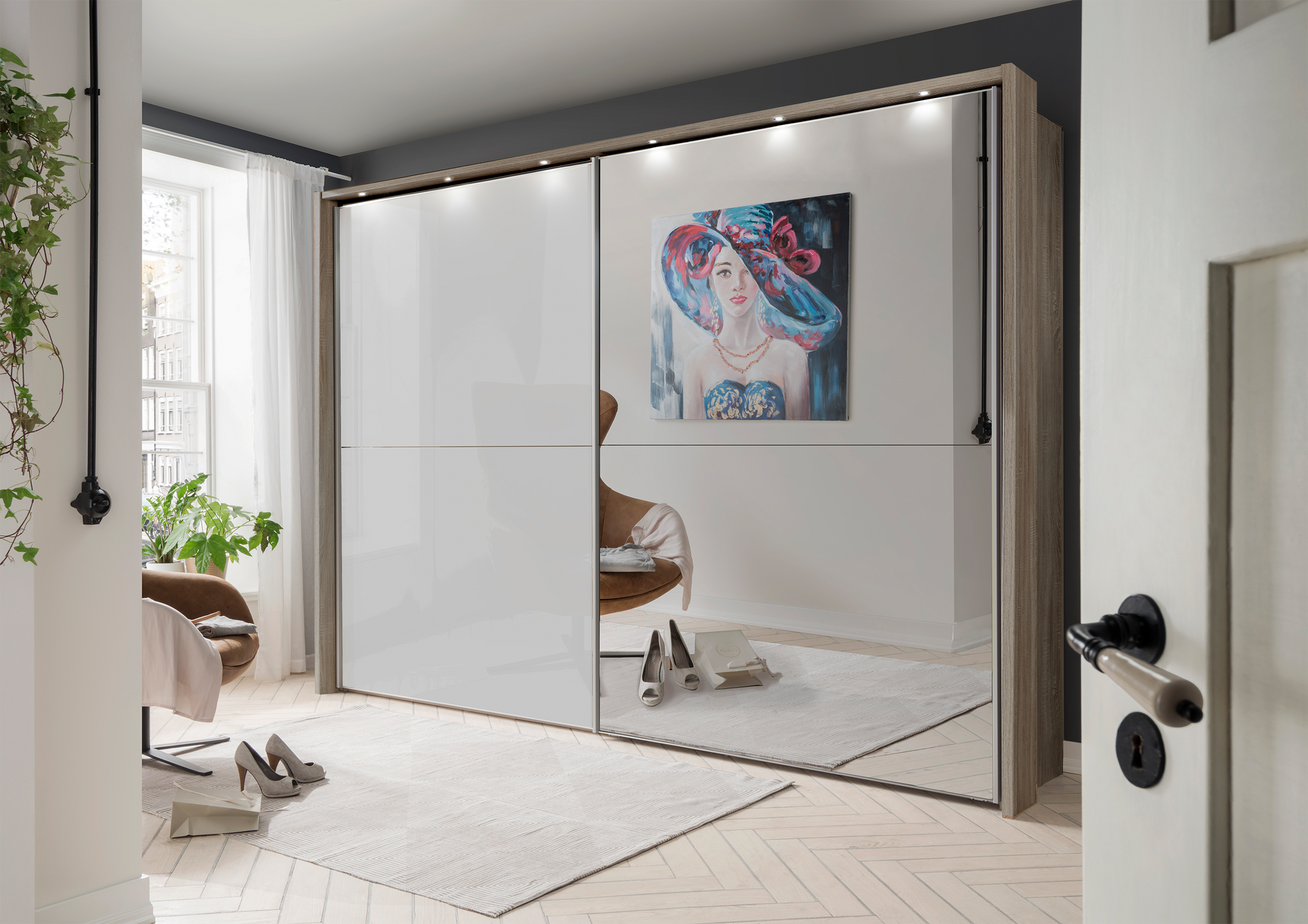 The Bermuda Sliding Wardrobe in Glass White W250 H217 D67 cm