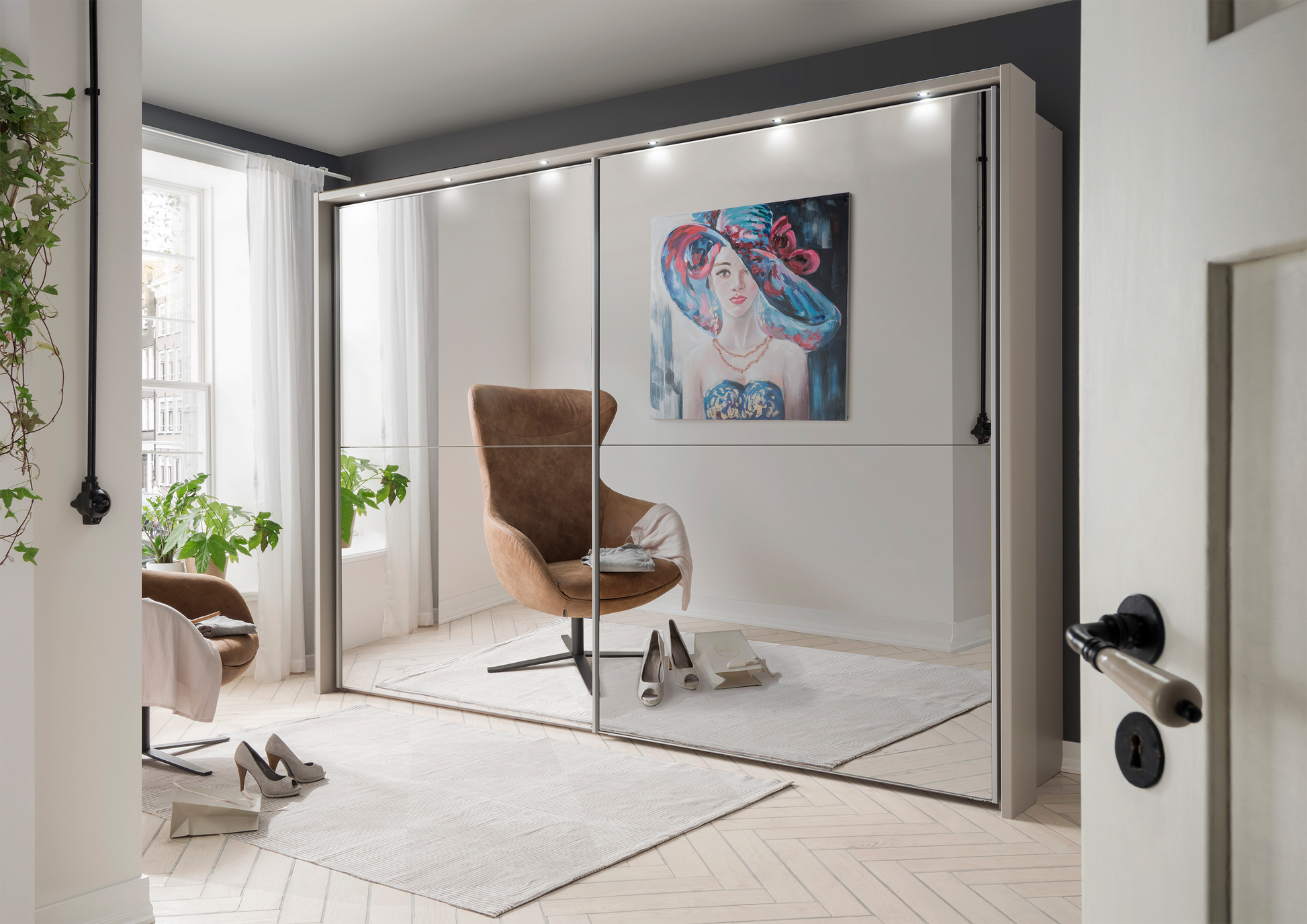 The Bermuda offers plenty of style and choice, available in five carcase finishes - white, pebble grey, graphite, rustic oak, or dark rustic oak, which can be combined with mirrors and white, pebble grey or graphite glass panels. There are four sizes of two door sliding robes from 150 to 300 cm and hinged doors ranging from a single 50cm width to a three metre six door set.