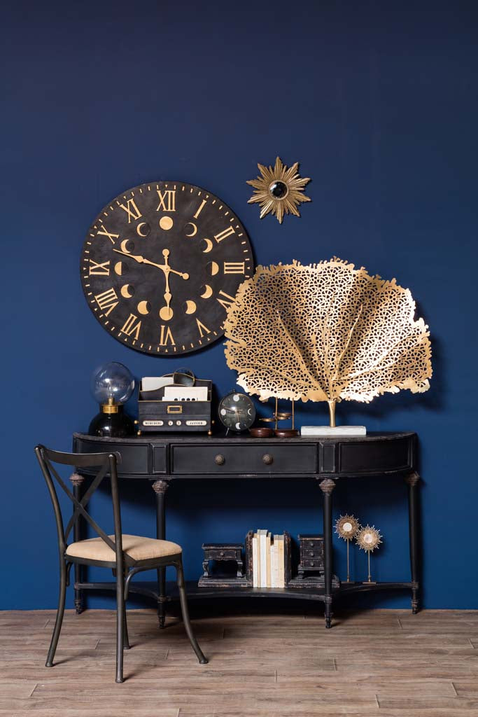 Introducing this stylist console table: Meticulously crafted from high-quality metal with a sleek black finish and distressed detailing, this table effortlessly blends rustic charm with contemporary style. It offers ample surface space and a lower shelf for versatile storage and display options. Durable and sturdy, it's the perfect addition to your hallway, entryway, or living room, infusing your space with enduring elegance and character.