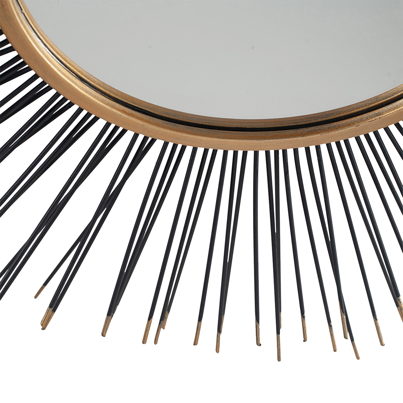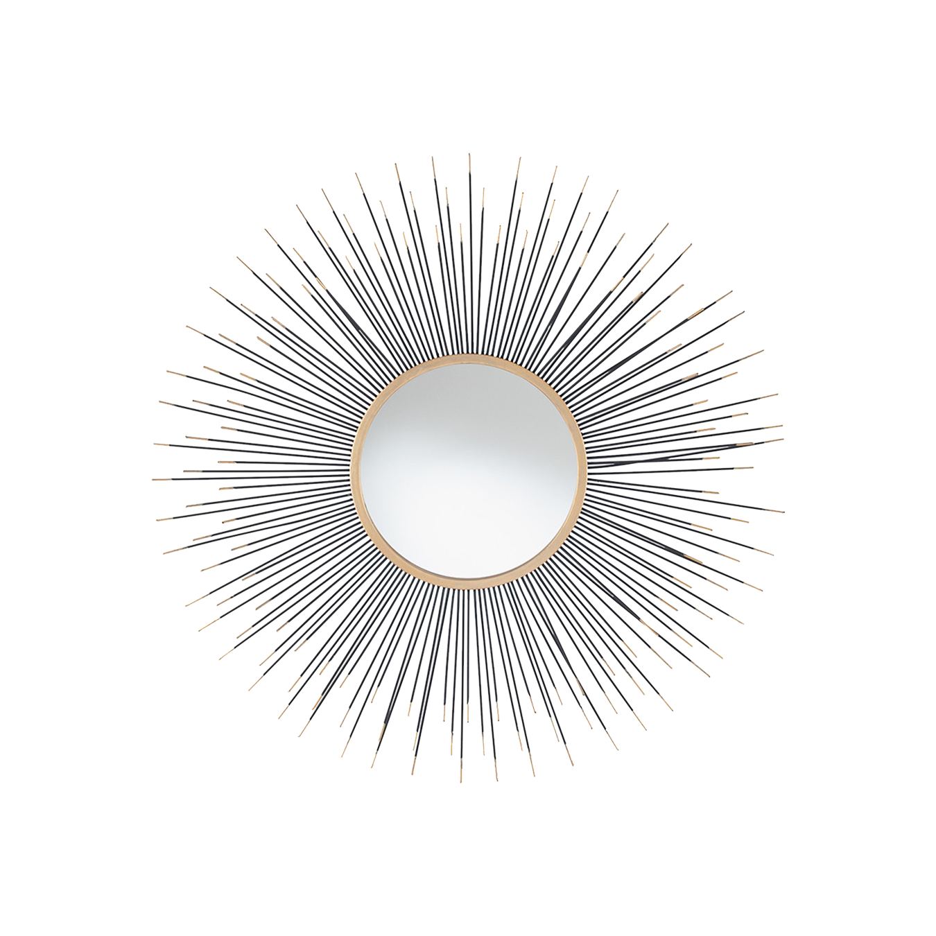 This flamboyant and stylish black and gold metal starburst wall mirror is definately a talking point. The intricate art deco style framed mirror will look fabulous in any interior. This mirror is perfect for drawing attention to your accent wall and a design piece for an incredible room setting.