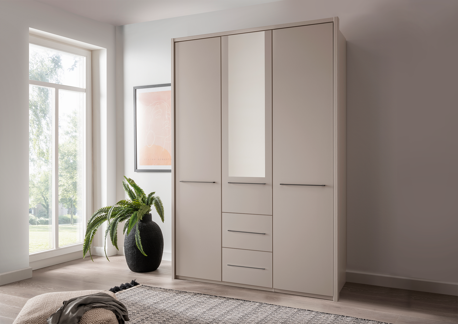 The Cairo is a value-focused wardrobe with matte-painted hinged doors, available in white, pebble grey or graphite for a contemporary look to suit any style of home. It is available with or without mirrors, with or without drawers, with handles in slate or silver, and is a versatile choice. Sizes range from 1 door at 50cm all the way up to 8 doors at 400cm wide.
