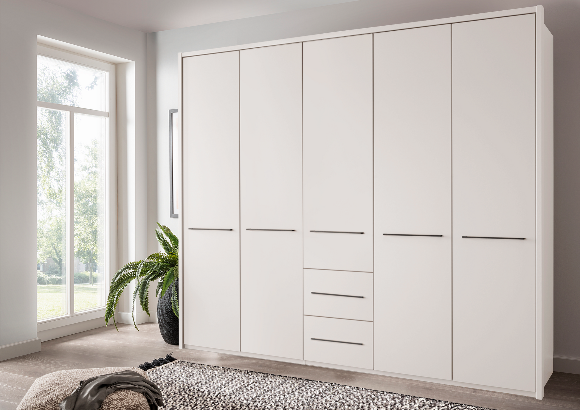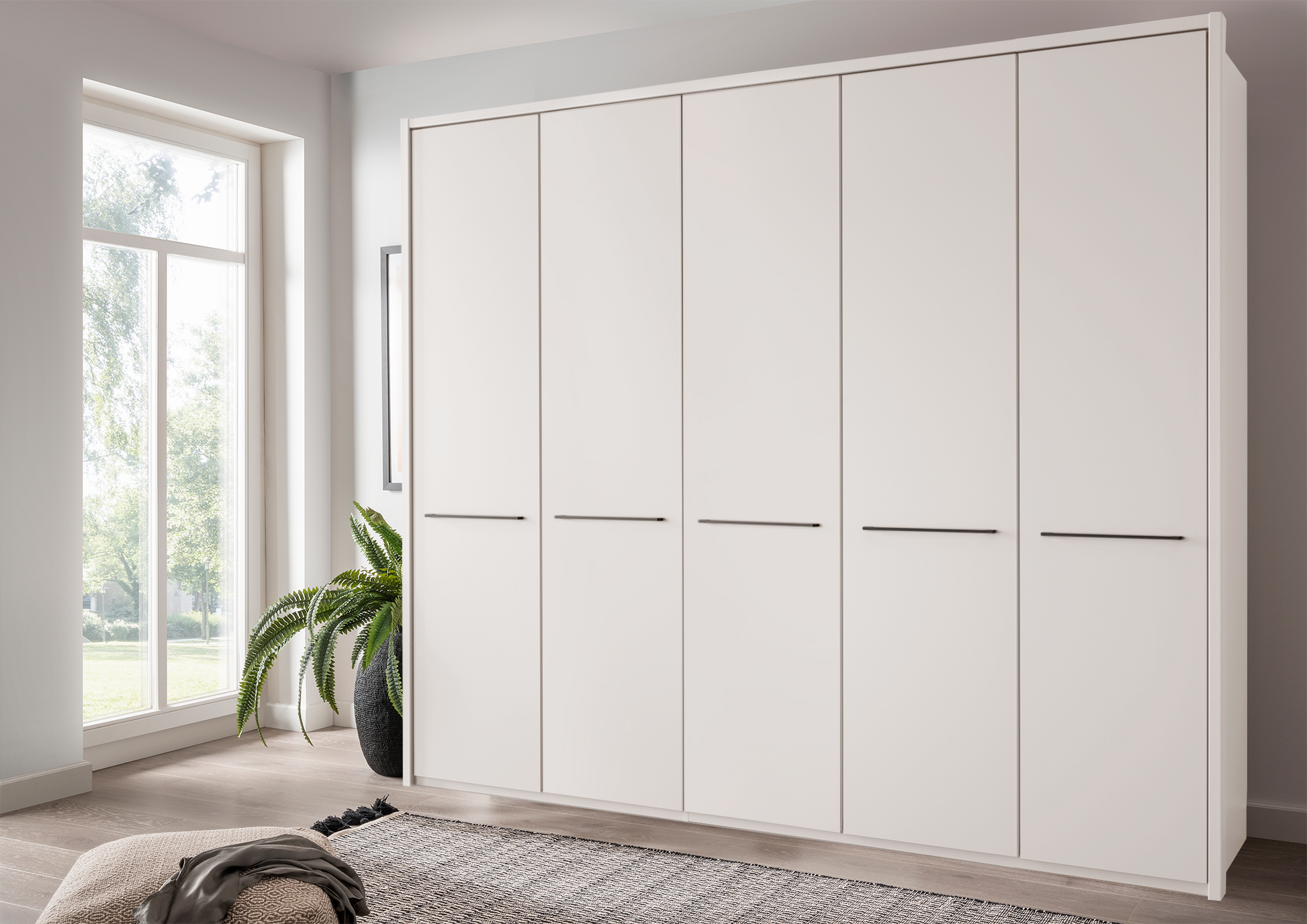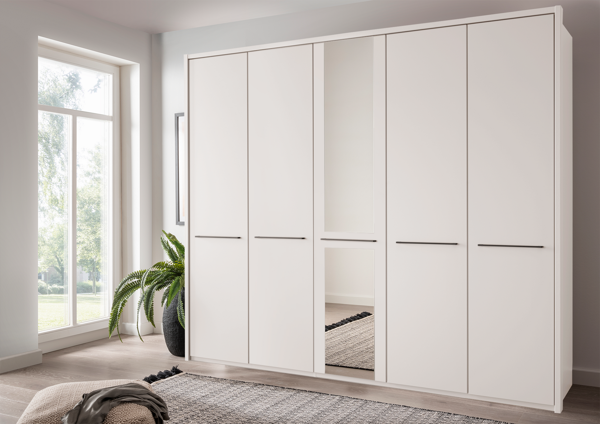 The Cairo is a value-focused wardrobe with matte-painted hinged doors, available in white, pebble grey or graphite for a contemporary look to suit any style of home. It is available with or without mirrors, with or without drawers, with handles in slate or silver, and is a versatile choice. Sizes range from 1 door at 50cm all the way up to 8 doors at 400cm wide.