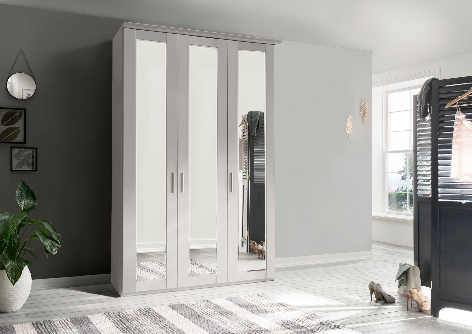 There’s a hint of the country cottage to the styling of the Oxford, which we’re certain will have wide appeal to those looking for something slightly more traditional. The hinged door robe is available in off-white, soft champagne or pebble grey, with full length mirror door options in sizes ranging from two to six doors.