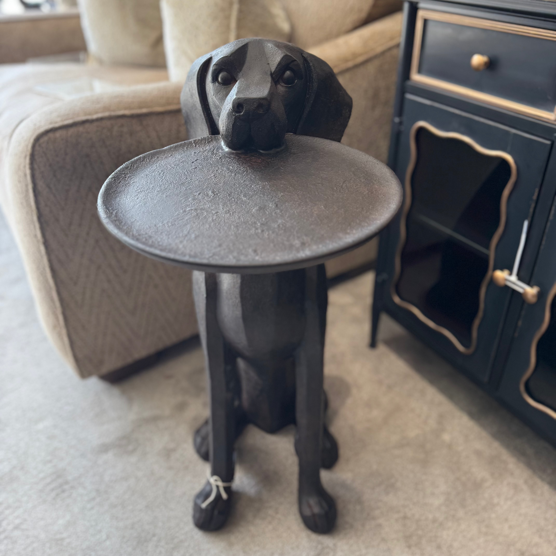 Meet Darcy at Your Service, the most loyal side table you'll ever own! This charming resin dog-shaped table is ready to hold your coffee, books, or even a treat (for you, not him!). With its sculpted design and sturdy build, Darcy is both a functional piece and a conversation starter. Whether you're a dog lover or just appreciate unique furniture with personality, this good boy is always on duty—no walks required!