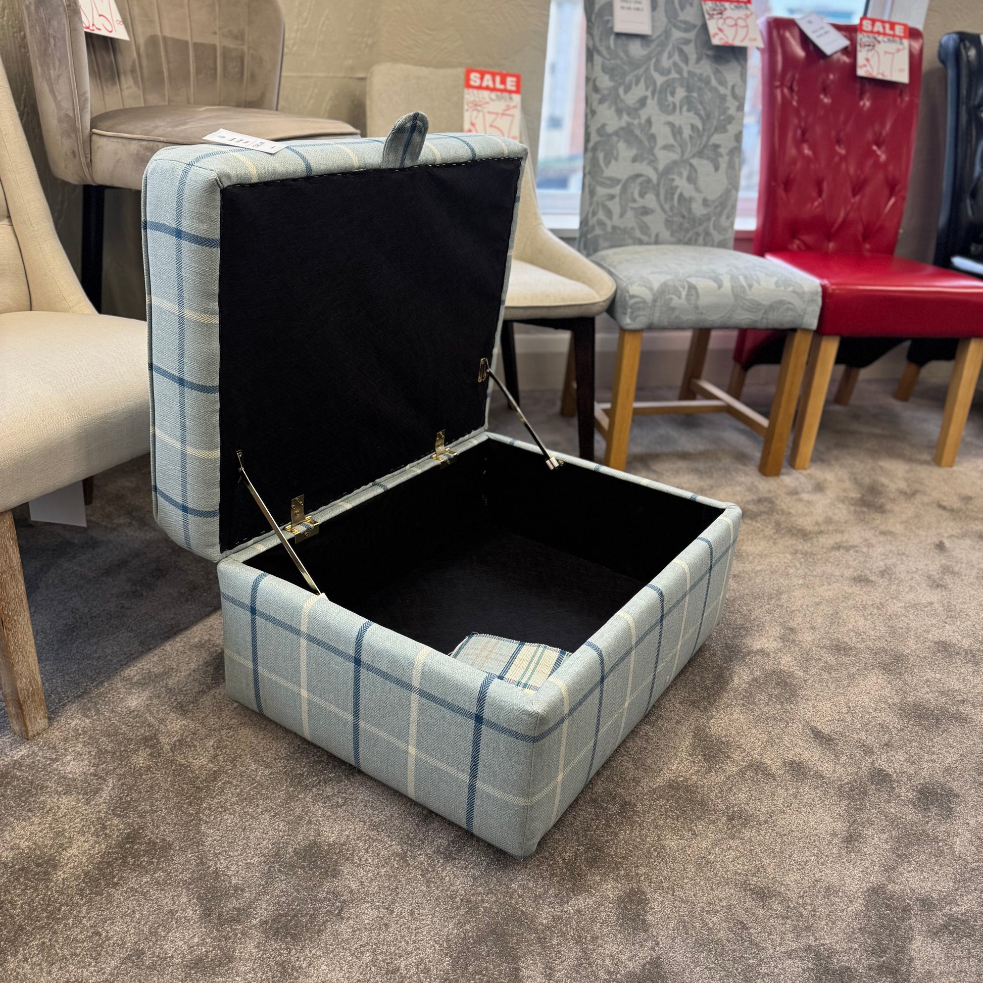 Discover this exquisite British-crafted storage stool in duck egg, now available at exceptional clearance pricing. Combining elegant design with practical functionality, this piece offers the perfect blend of style and storage solutions for your home. A sophisticated addition to any room that doesn't compromise on quality or value.