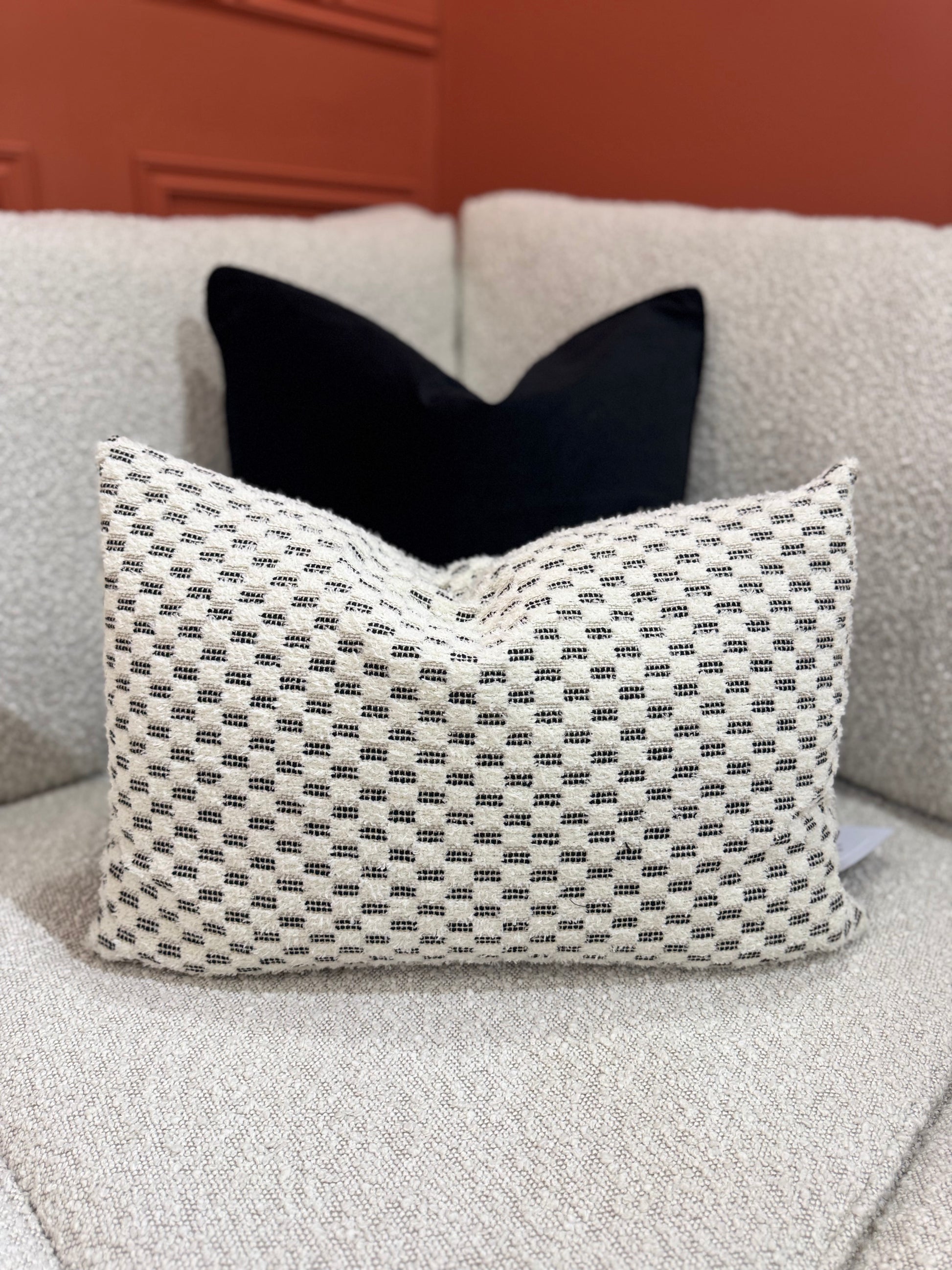 Sophisticated and effortlessly stylish, the Monroe Bouclé Cushion brings a refined touch to any interior. The contrast of black and cream woven texture creates a timeless yet contemporary look, making it a versatile statement piece. Crafted from luxuriously soft bouclé fabric, this cushion adds both comfort and depth to sofas, armchairs, or beds. Whether styled alone for a minimalist aesthetic or layered with other textures, the Monroe Bouclé Cushion is the perfect finishing touch for a curated home.