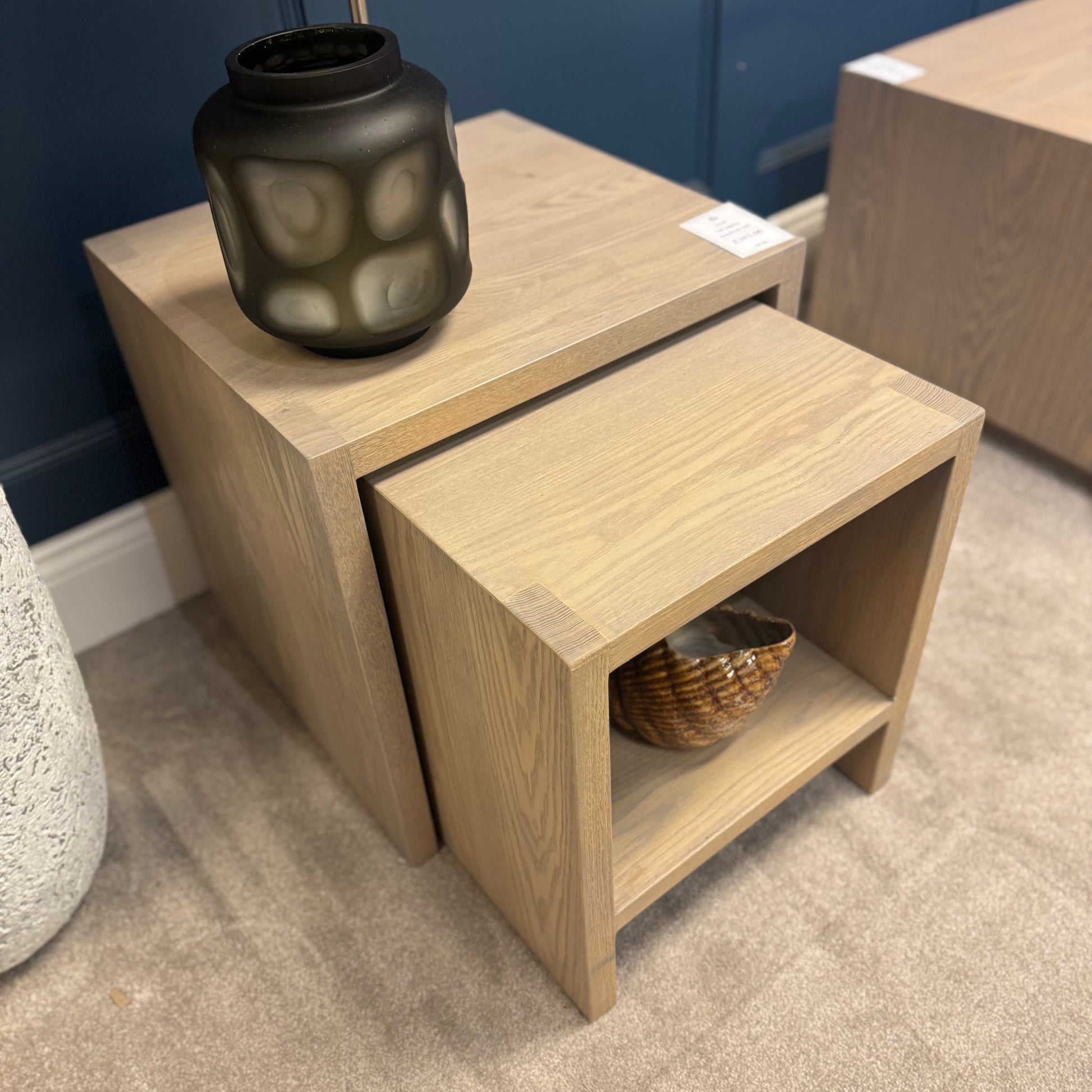 The Fjord Oak Nest of Tables in Smoked Oak brings versatile elegance to your interior. Constructed from oak veneer with a distinctly contemporary aesthetic, this thoughtfully designed set combines practicality with refined style. Its nested configuration offers flexible functionality whilst maintaining a streamlined presence, making it an ideal choice for those seeking both visual refinement and intelligent space management.