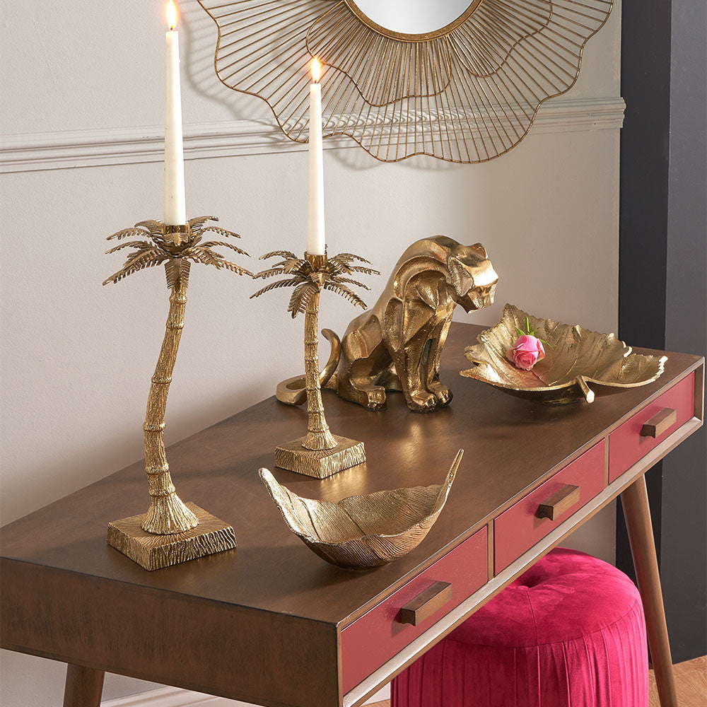This stunning, statement shiny gold metal stylised jaguar will instantly command attention and will provide the perfect finishing touch to your interior.