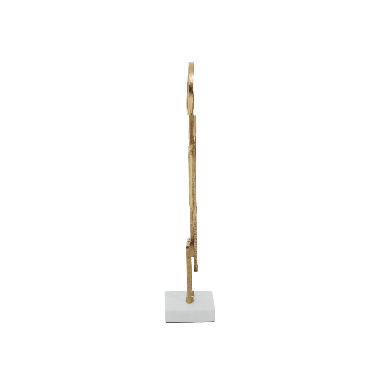 Add a modern edge to your décor with this gold metal sculpture on a marble base. The abstract design of this piece will ensure to create a statement piece and add visual interest to a room.