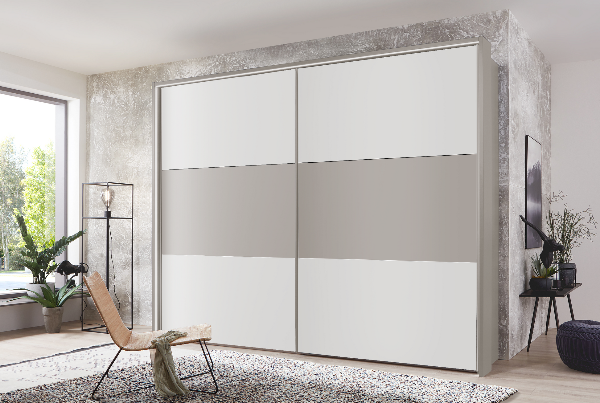 This simple and sleek, two-door sliding door robe collection offers a dash of contemporary styling to any room. This range of two-door sliding wardrobes can come in two heights and three widths to suit a wide selection of needs. Choose from carcasses in graphite, bianco oak, white and pebble grey with door fronts featuring bianco oak, white, pebble grey and crystal mirror to create a modern look.