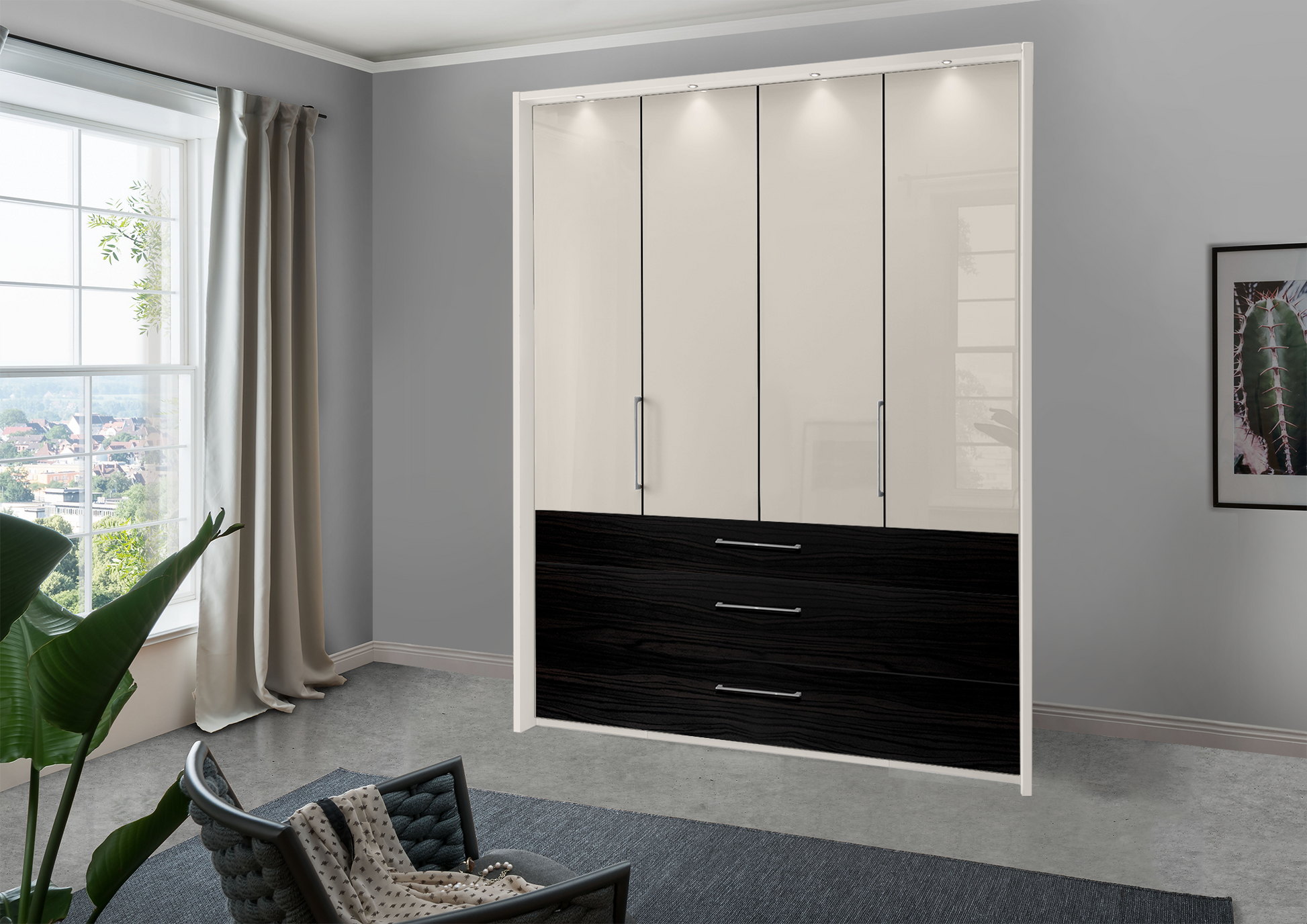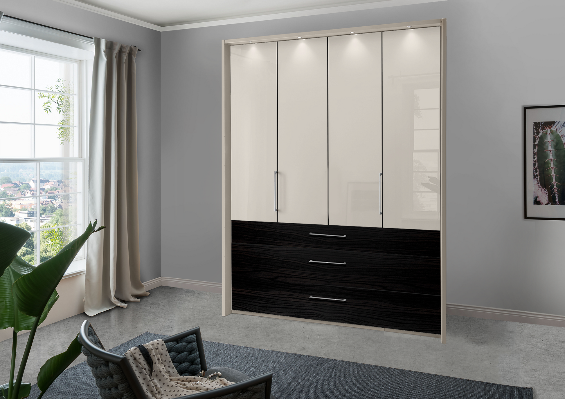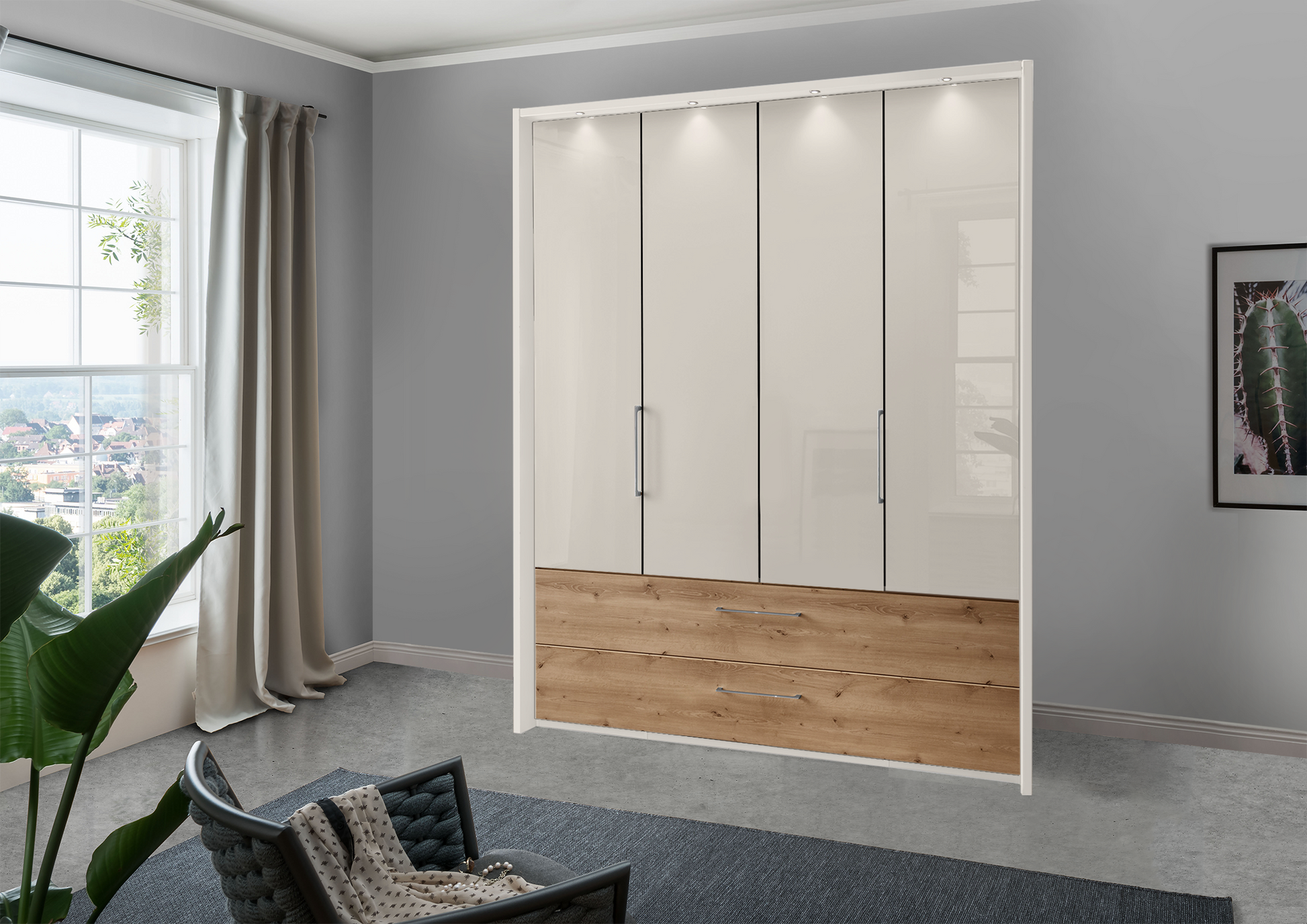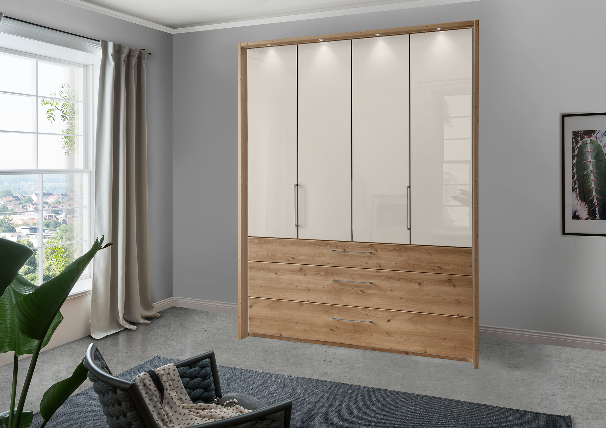 The Munich 4 Door Wardrobe in Glass Champagne with Drawers W200 H216|236 D58 cm