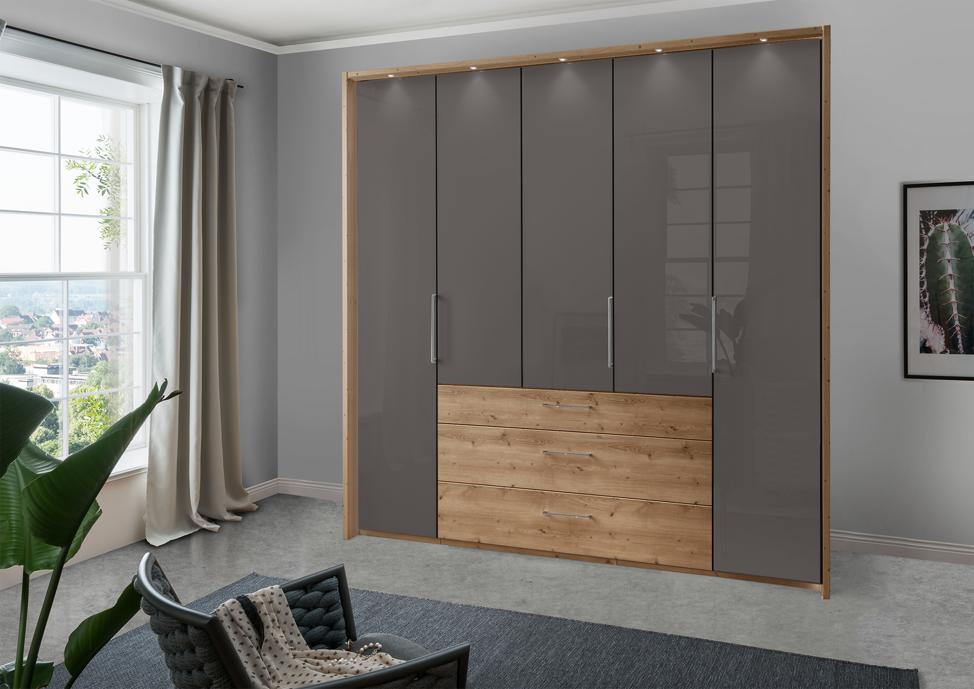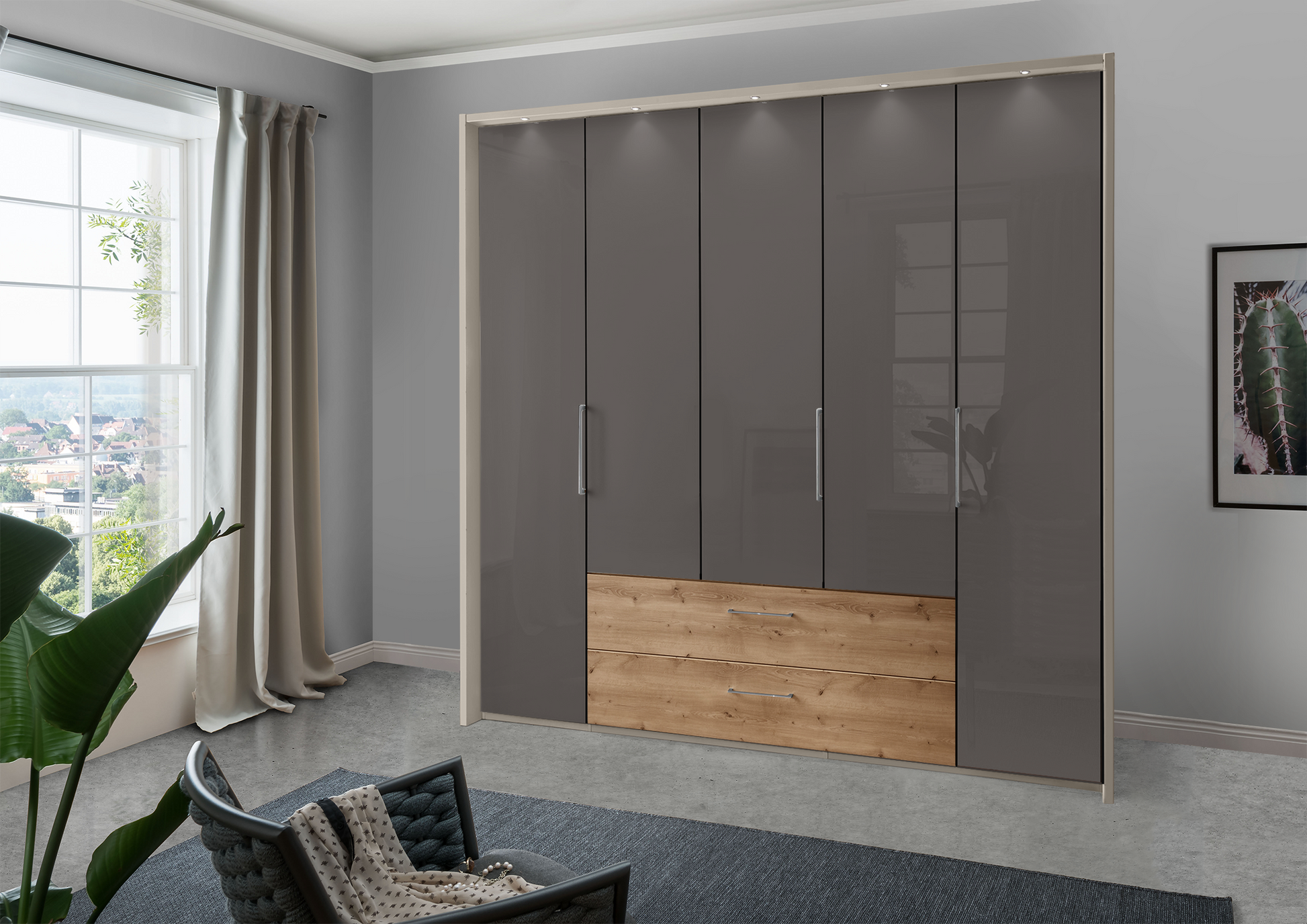 Munich 5 Door Wardrobe Glass Havana with Drawers 250 cm