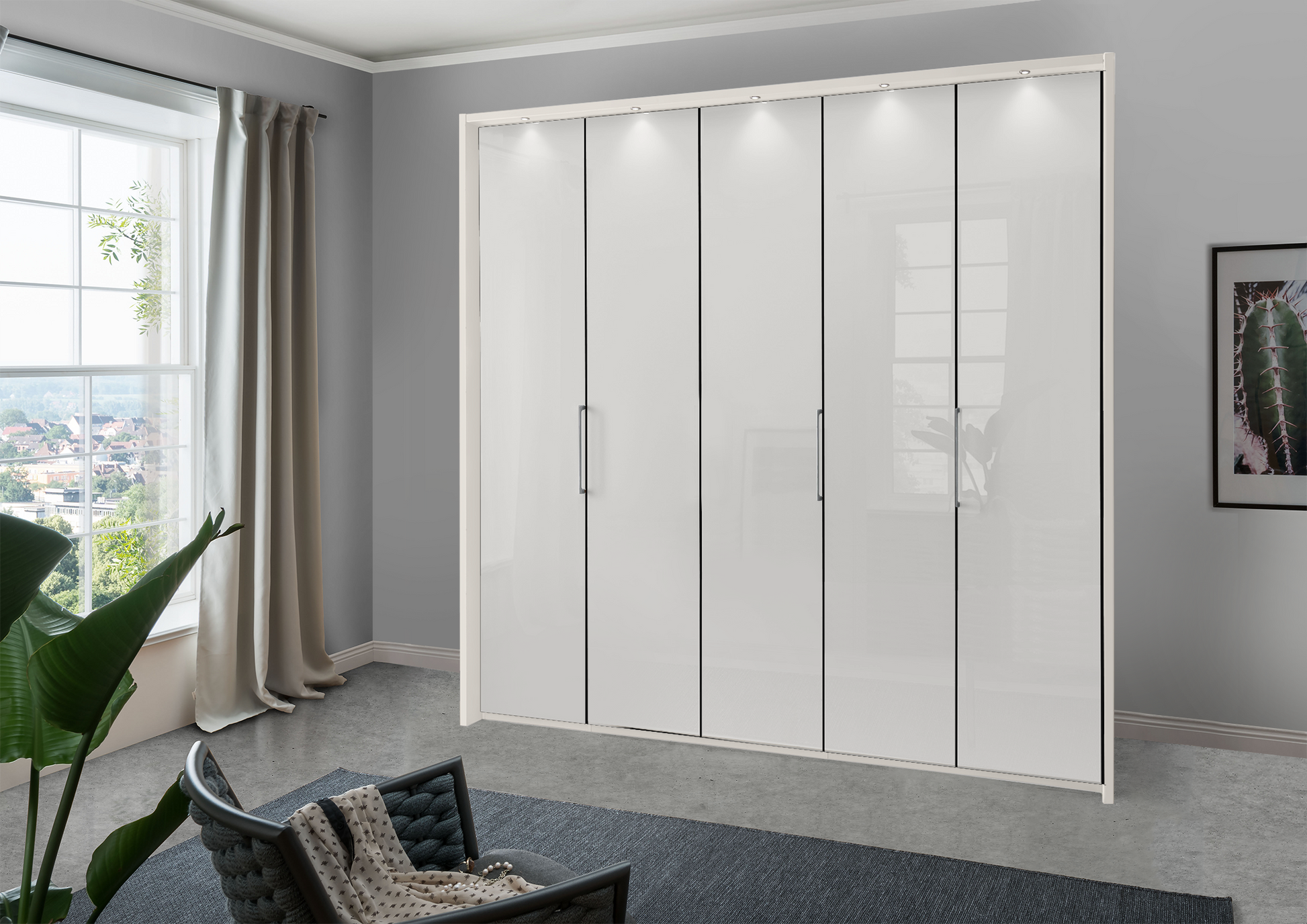 The Munich 5 Door Wardrobe in Glass White W250 H216 D58 cm