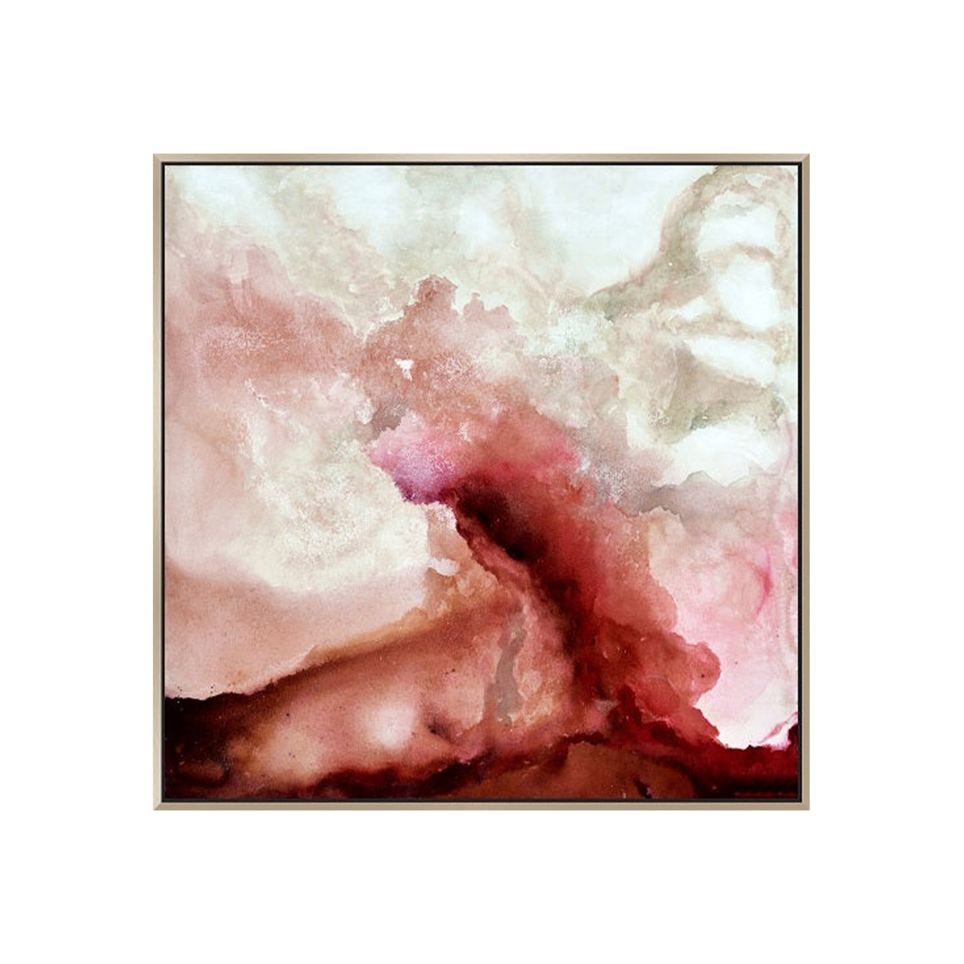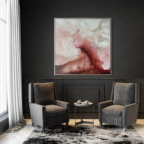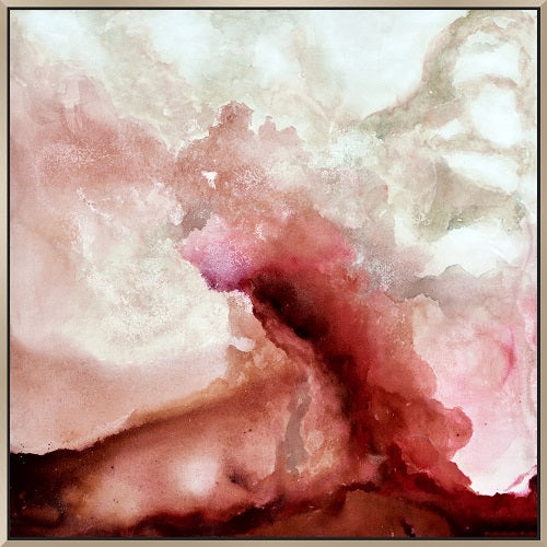 Native, Multi will infuse bright and vibrant color into your décor. This original abstract painting on canvas features hues of striking red & pink finished inside a contemporary champagne floating frame.