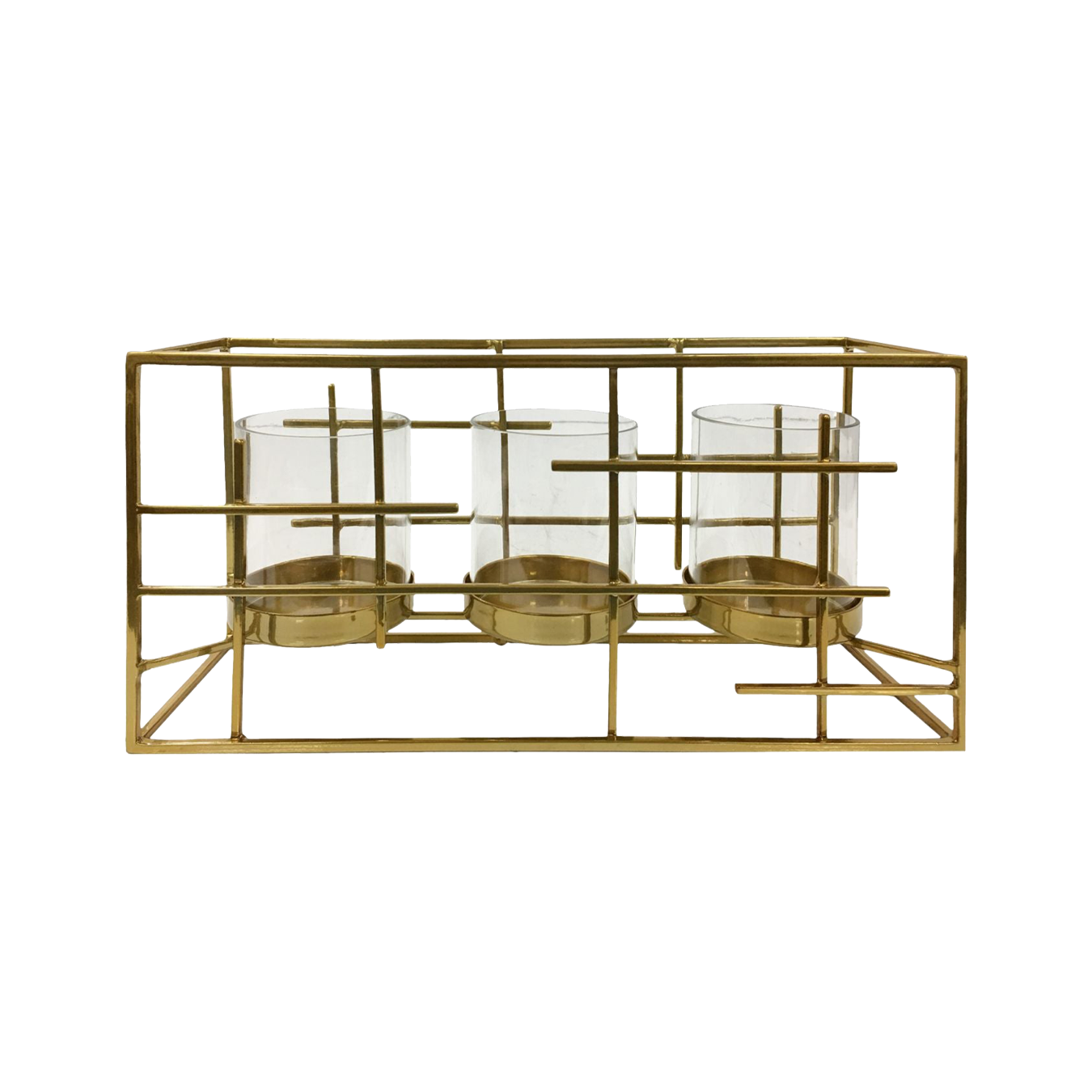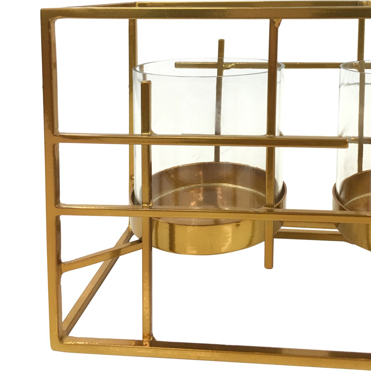 A striking design that looks at home in New York thanks to its obvious art deco stylings, the Lempicka Metallic Gold Hurricane is a unique-looking candle holder.