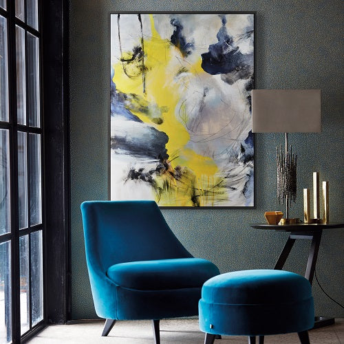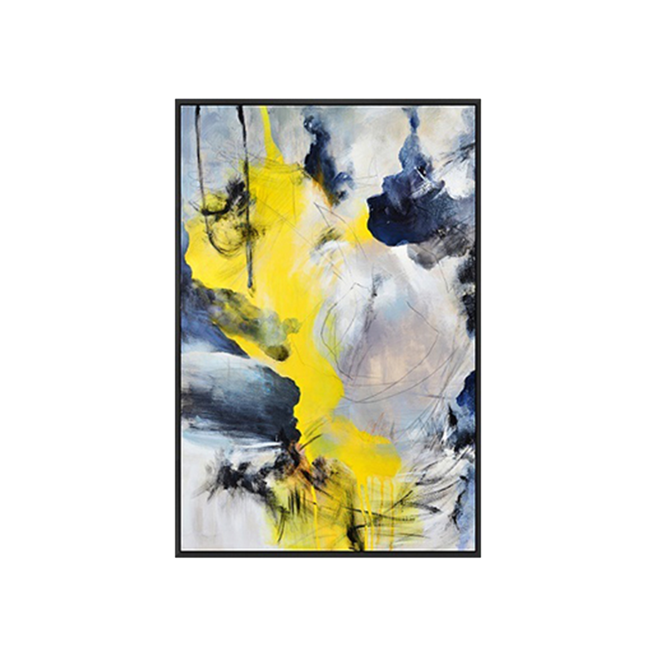 This yellow, navy grey abstract painting is the perfect addition to your home. This wall art features a floating black frame, which helps create an urban feel and adds an instant focal point on any wall. Rock Garden is a hand-painted design, by artist Ksenia Sizaya.