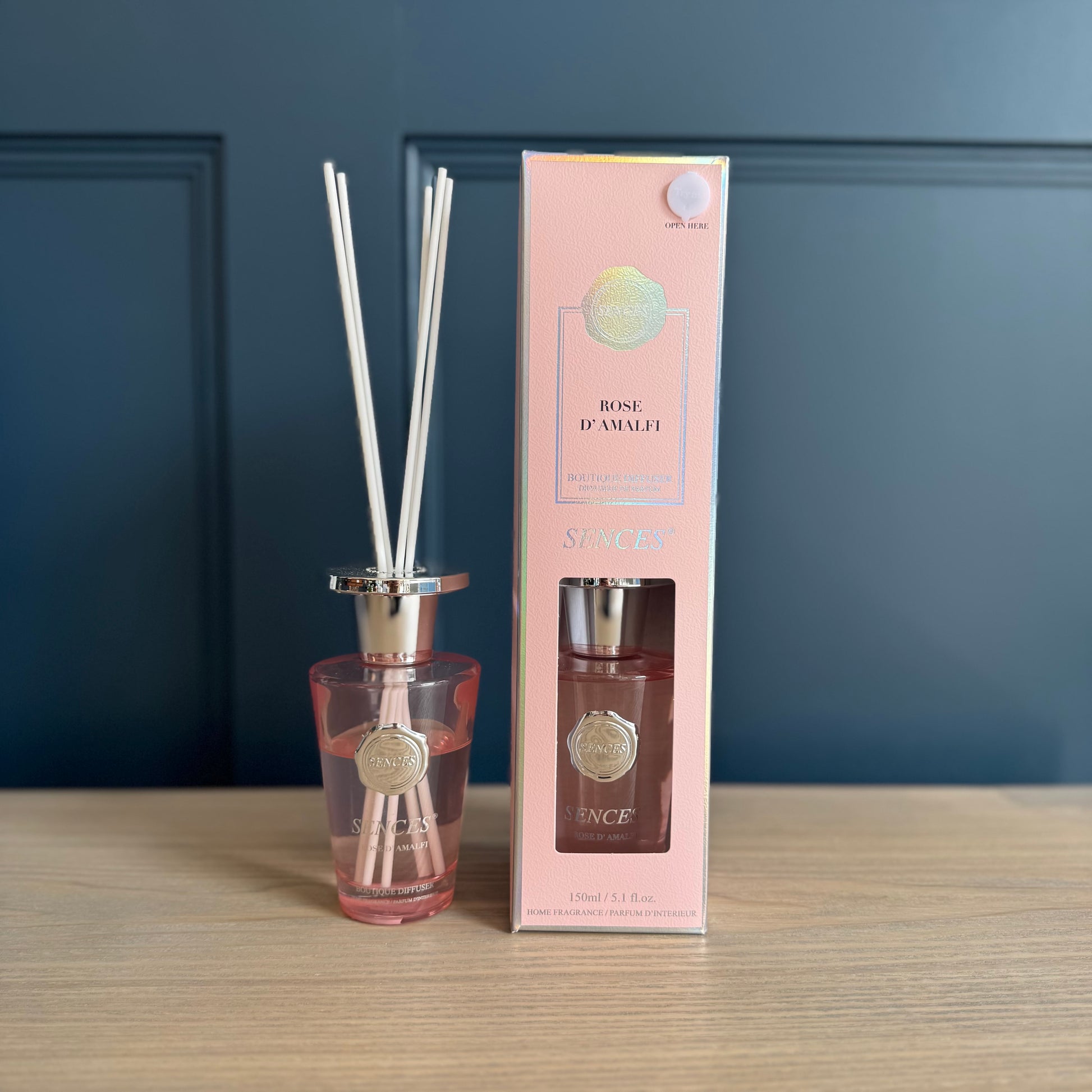 Romantic and refined, the Rose D’Amalfi Reed Diffuser captures the elegance of the Amalfi coast in full bloom. Blending sun-ripened fruits with delicate rose and soft woods, this fragrance brings a sense of timeless luxury and Mediterranean charm into your home.