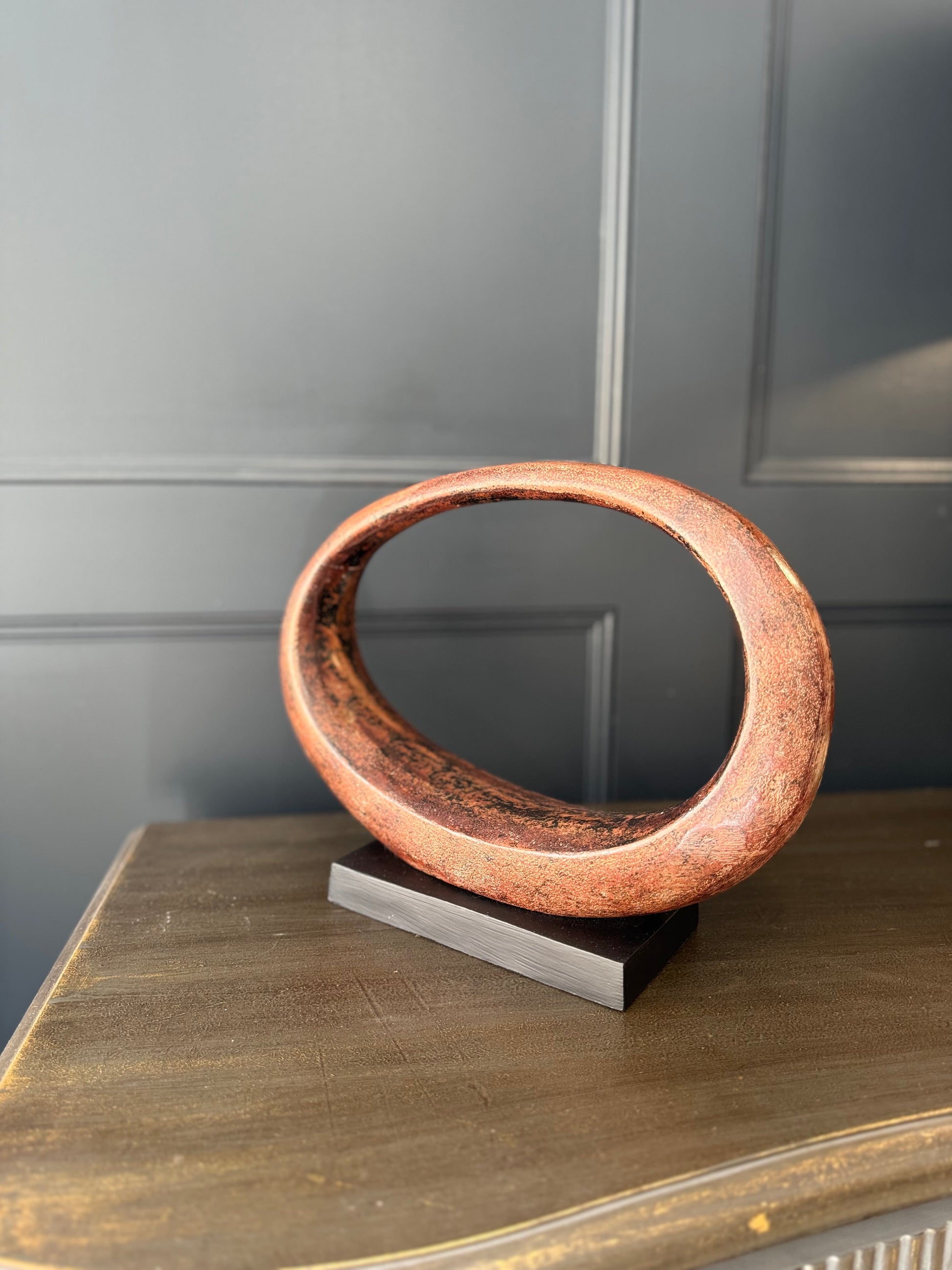 The "Brackenlow Form" is a sculptural expression of quiet strength and organic elegance. Cast in premium aluminium with a rich Brown finish, its smooth oval silhouette is both contemporary and timeless. Inspired by Lincolnshire’s rolling landscapes and historic charm, this piece captures the essence of natural movement and refined craftsmanship. Resting on a wide, stable base, it brings a sophisticated presence to any interior, making it a statement of enduring beauty and artistic heritage.