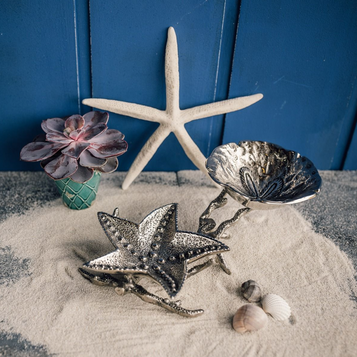 This creative duo of bowls is perfect for adding beach combing style to the home. Crafted from aluminium, the two decorative bowls are linked together by a faux coral base. One bowl is shaped to look like a starfish, with the other taking on the shape and patterns of a sand dollar.