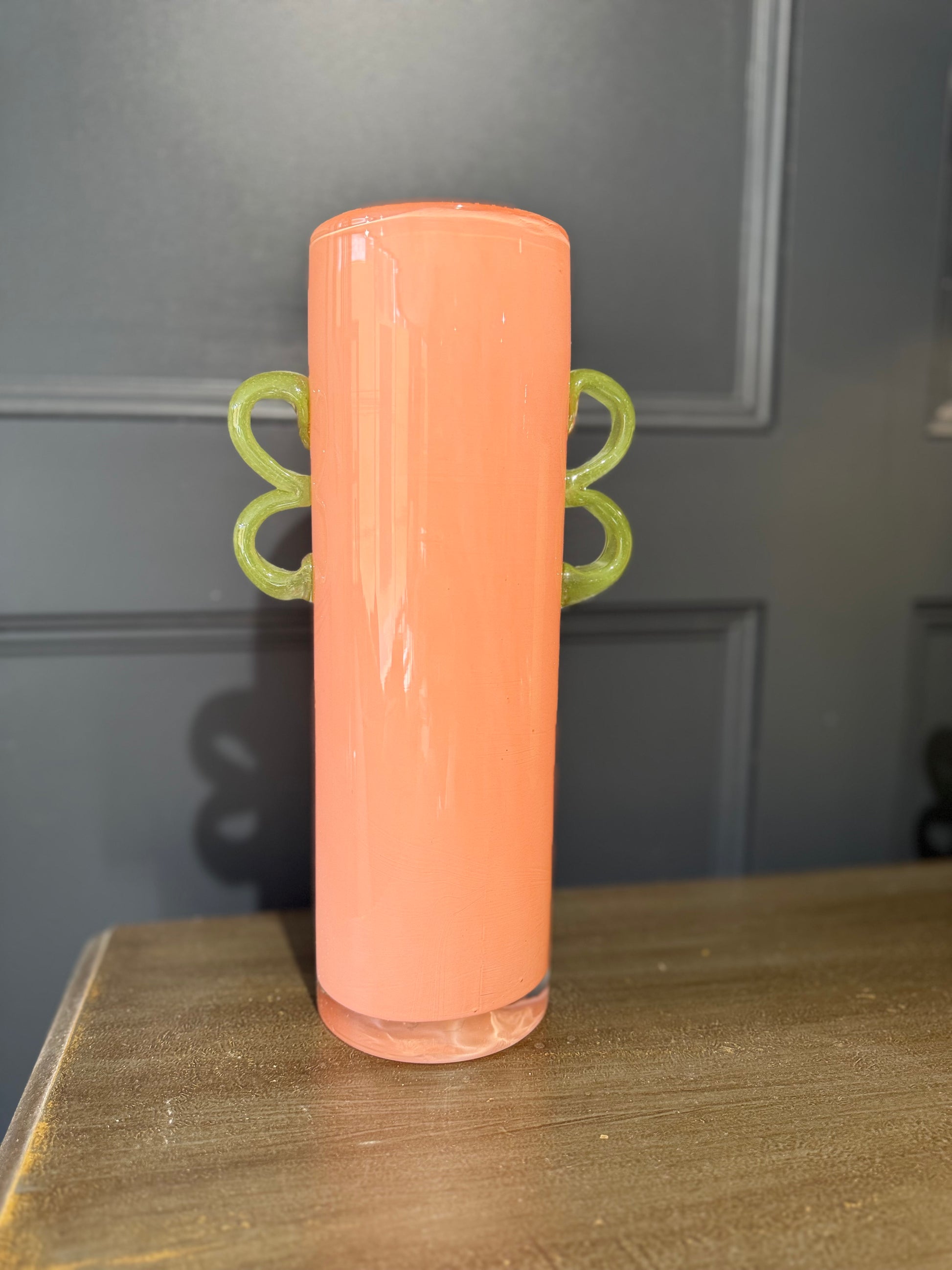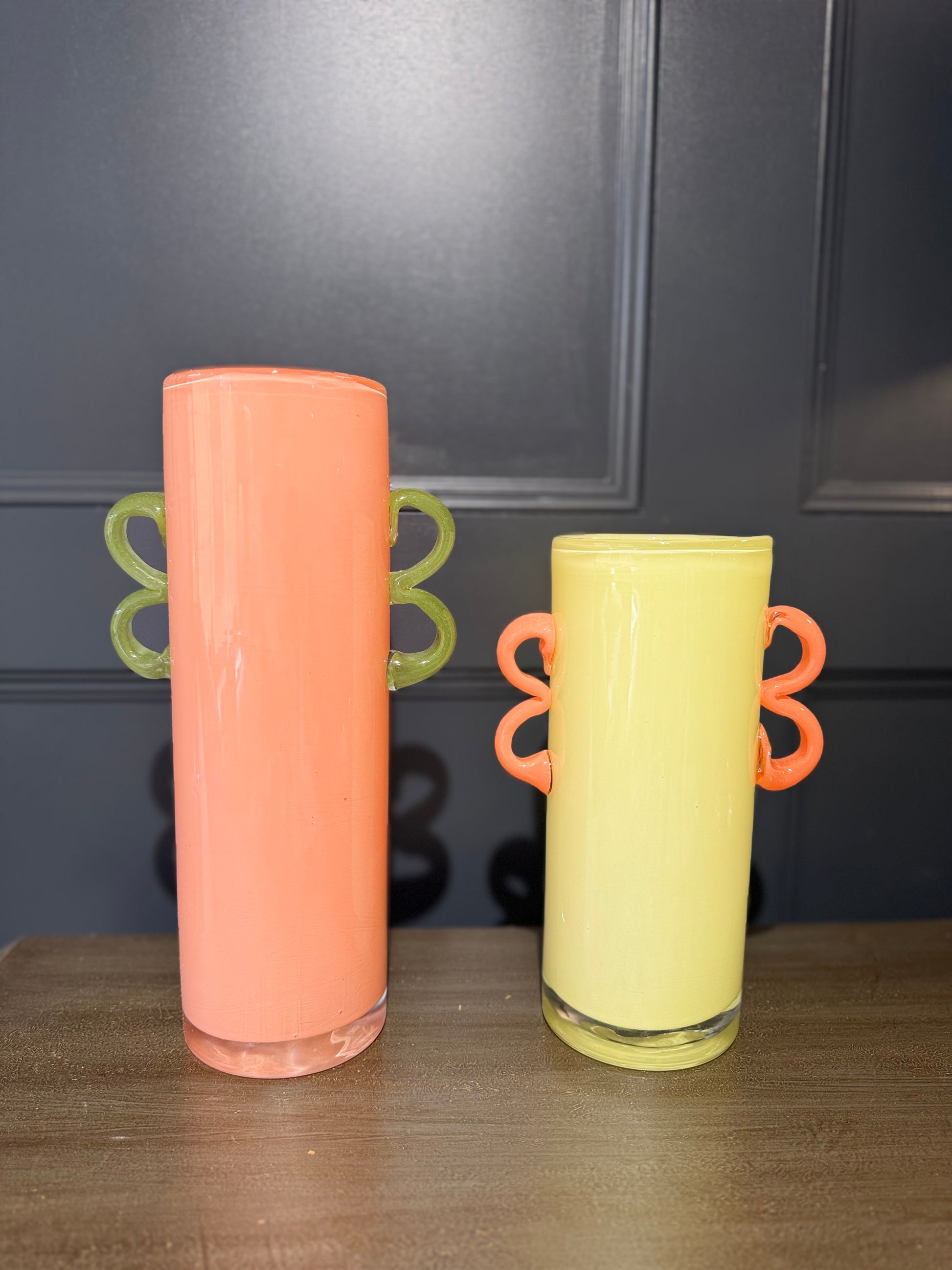 Brighten up your space with the Seraphina Orange Vase, a striking handmade piece featuring a vibrant Orange body and contrasting Green handles. Its unique colour combination and artisan craftsmanship make it a standout décor item, perfect for modern and eclectic interiors.