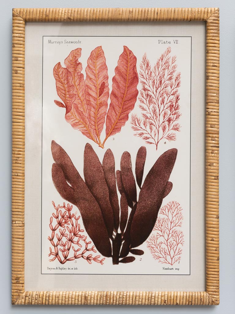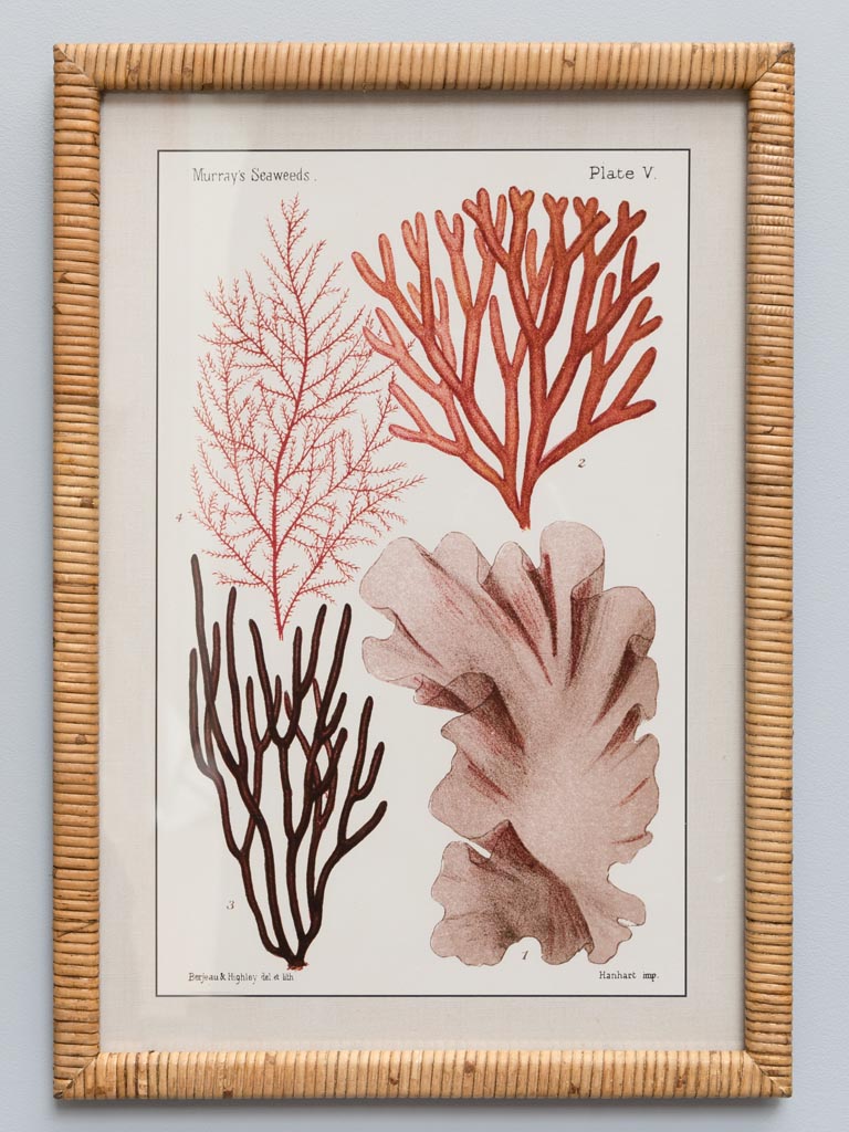 Introducing our Set of Four Coral Frames, a captivating fusion of marine science and timeless craftsmanship. Each frame showcases meticulously labeled coral illustrations rendered with exquisite precision. Encased in intricate rattan frames, these pieces seamlessly blend scientific accuracy with an artisanal touch, making them an ideal addition to the discerning art collector's ensemble. Whether displayed in your study, living room, or dining area, this set of coral frames serves as a captivating testament to the delicate beauty of coral reefs, offering both educational value and an elevated sense of coastal refinement.
