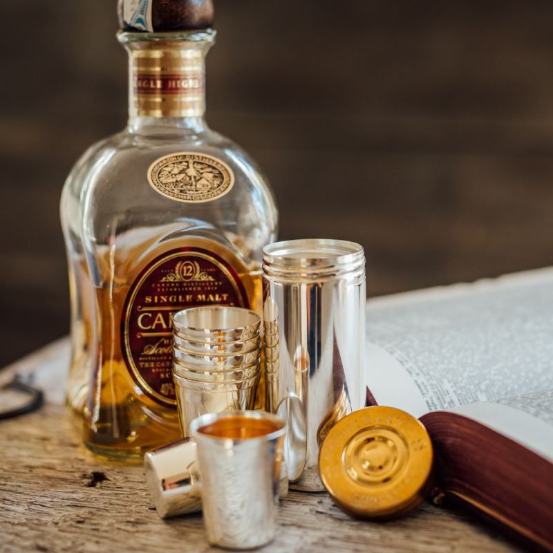 Our stylish and practical Cup Shot Set is the perfect way for every gentleman to toast a successful day in the great outdoors! Inspired by country sports, this makes a beautiful gift that fuses practicality and elegance with a touch of quirky appeal. Pocket this stunning, silver plated cartridge shaped case containing 8 stackable shot cups and enjoy your favourite tipple with friends - out and about and in style.