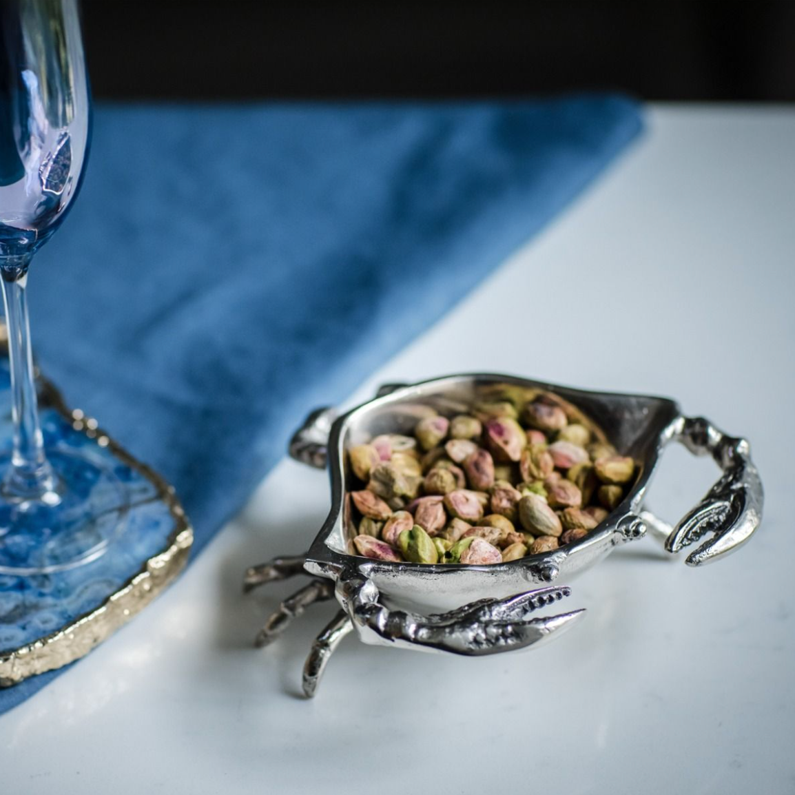 Our wonderful little Crab Nibbles Bowl has a charming design that will bring a smile to your face every time you use it. With exquisite detailing and a beautiful silver finish, this crab bowl (the perfect size for dips and sauces) will become a favourite at dinner parties. Displayed on a desk or shelf, this bowl can also be used as a spare change or key holder.