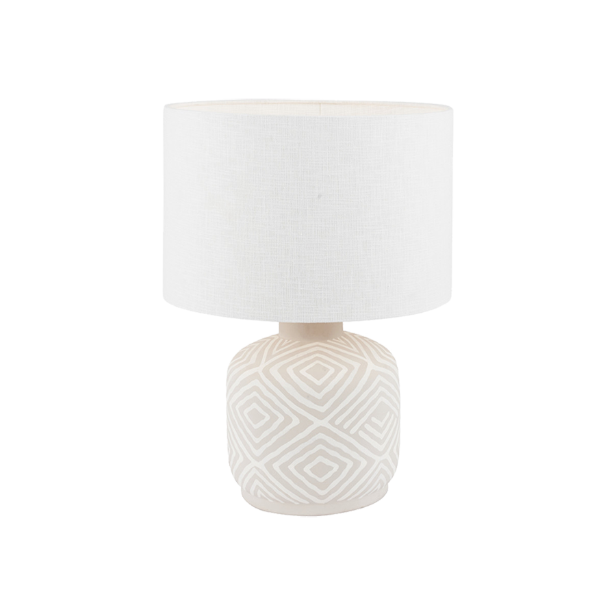 This softly curved petite pot has a delicate hand painted diamond design. Finished in a matt grey with the pattern in a matt white, this table lamp will sit beautifully within a neutral palette. Sold as a base only so that you can add a shade in your own style to the lamp. Paired with 30cm Taupe Handloom Cylinder Shade or 30cm White Handloom Cylinder Shade.