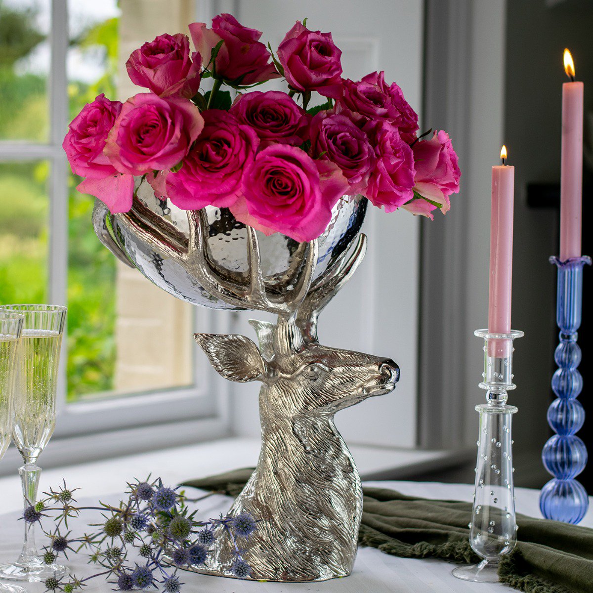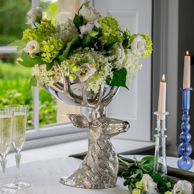 Revel in the captivating allure of our Stag Head Stand with Hammered Metal Bowl, meticulously crafted to bring a touch of regal wilderness to your gatherings. The bowl boasts a hand-hammered metal finish, which not only reflects light beautifully but adds a vintage charm. Whether it’s a festive holiday gathering, a lavish party, or an intimate dinner, this beautiful addition to our Stag collection is guaranteed to impress.