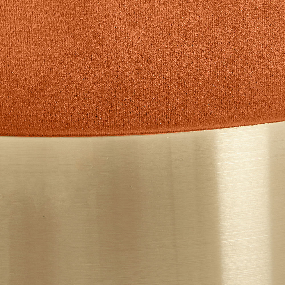 This luxurious tobacco velvet pouffe with a shiny gold metal base will add a touch of glamour to any interior. Available in many colours, this pouffe can be used as occasional seating, a convenient footrest or unique side table.