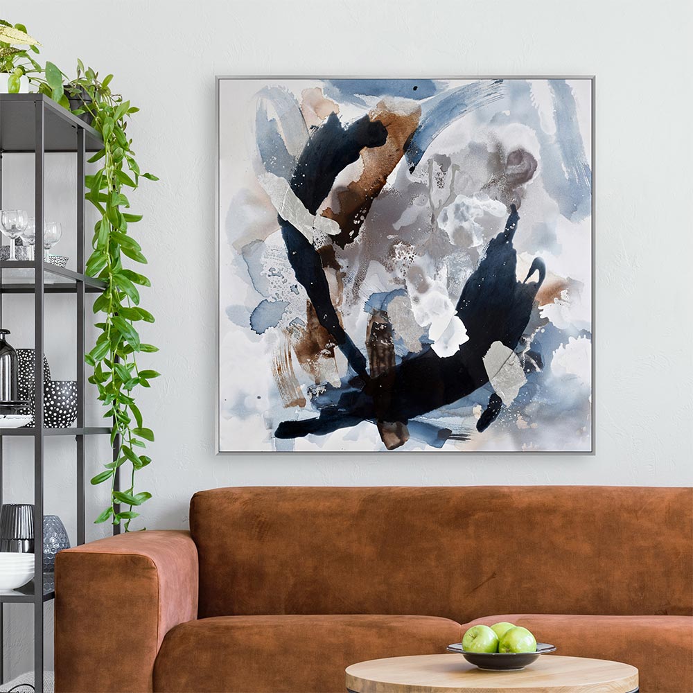 Vico, Multi will take center stage in your home. The pieces features bold hues of navy, brown & white, finished inside a silver frame.